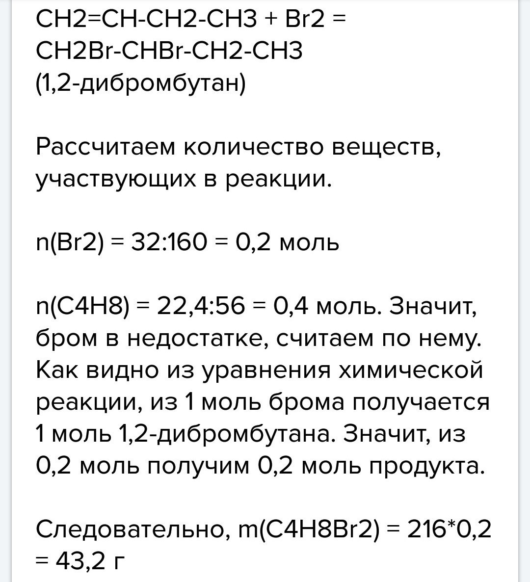 Следовательно, m(C4H8Br2) = 216*0,2 = 43,2 г