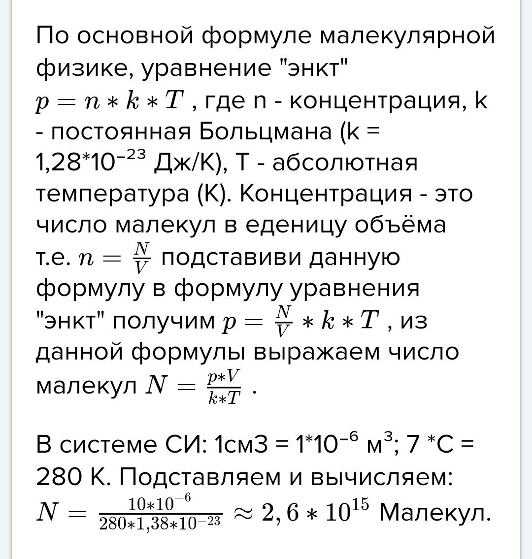 в сосуде находится газ при давлении 10 н/м2 и температуре 7градусовC. Сколько молекул содержится в 1 см3 газа?