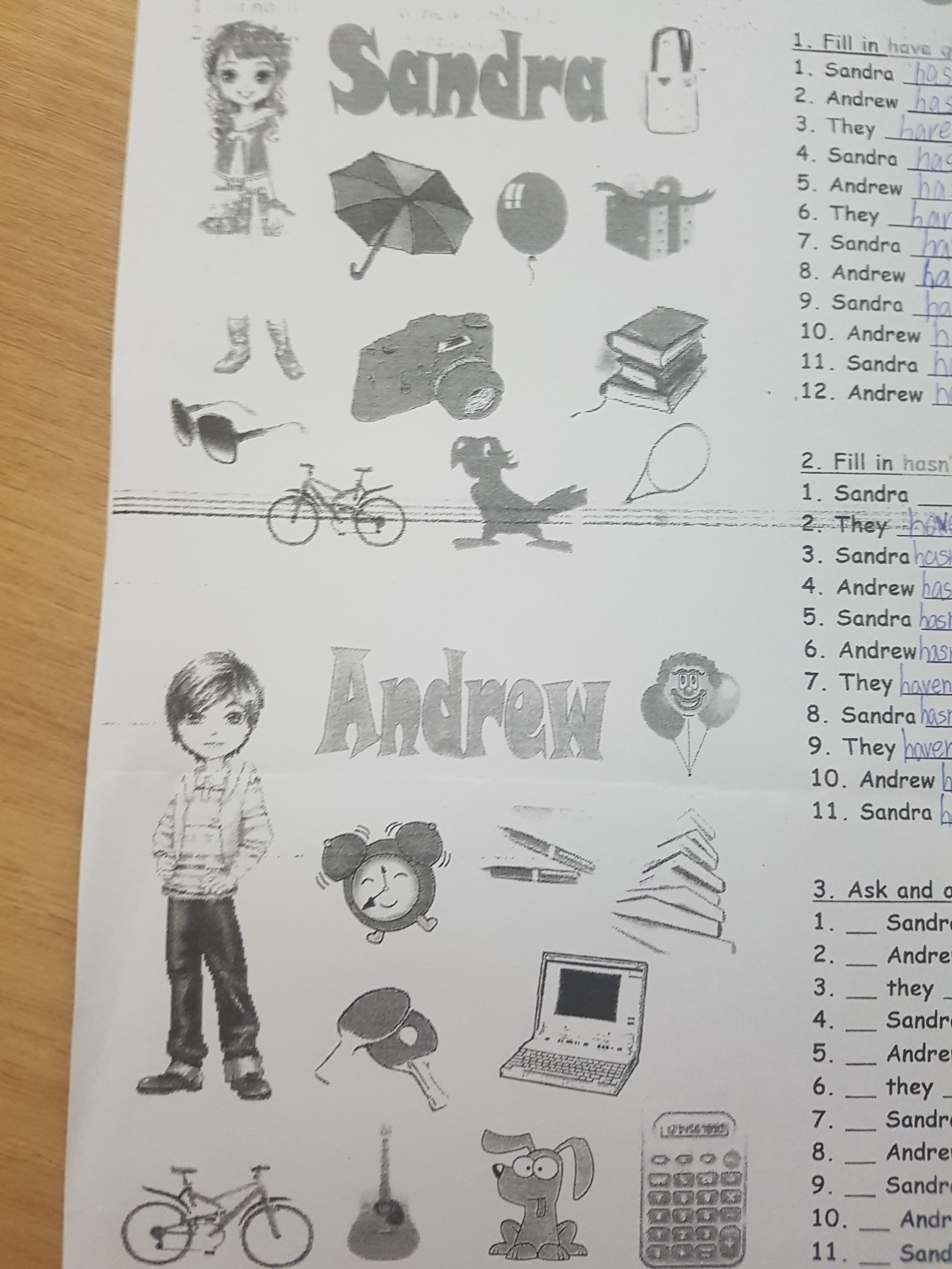 5. Has Andrew got two balloons? - No, he has got three baloons