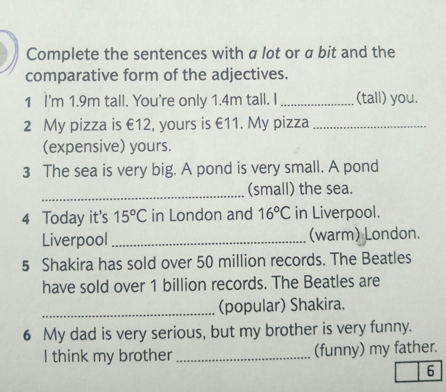 выбрать a lot или a bit и поставить прилагательные в правильную форму.