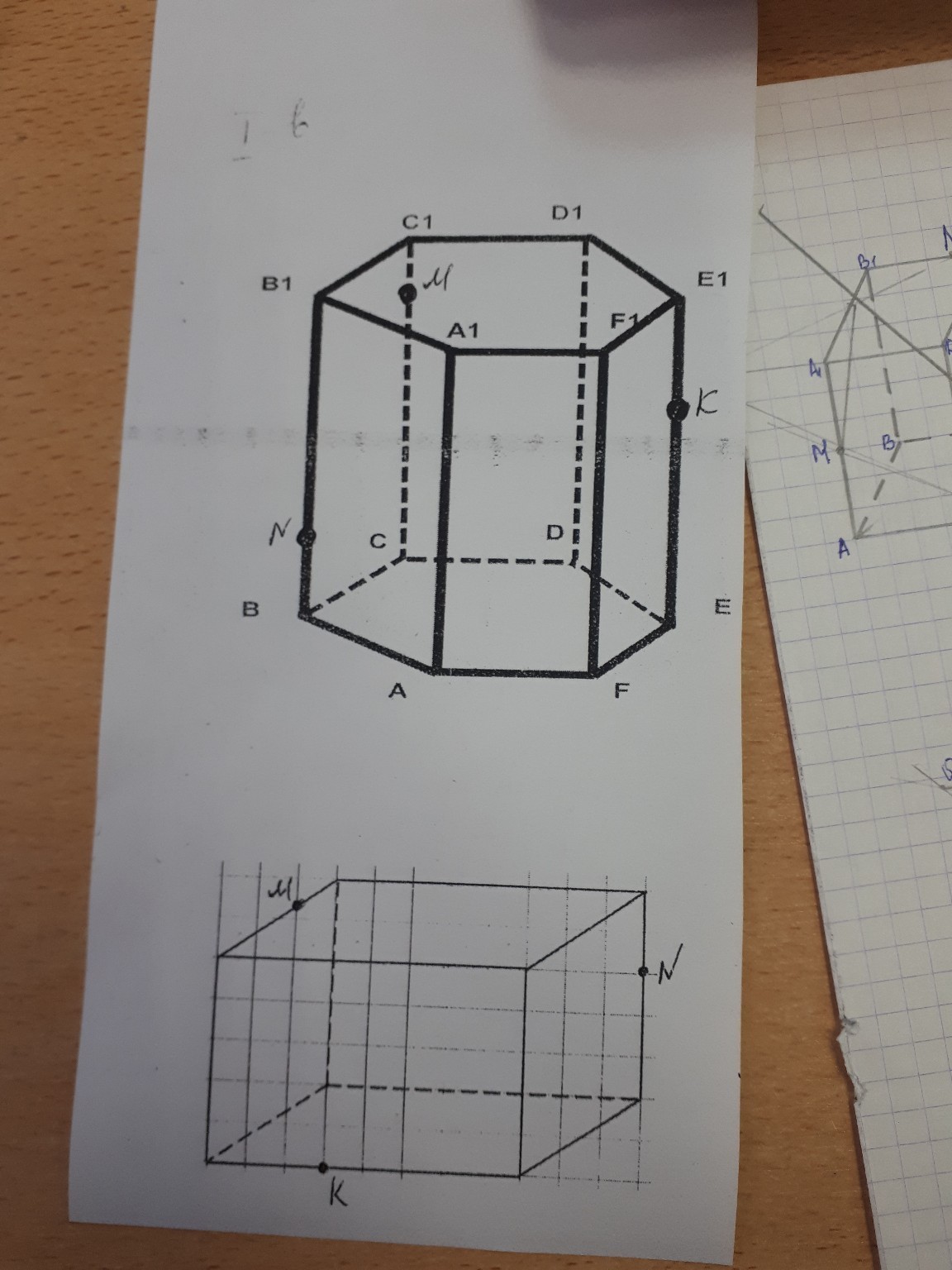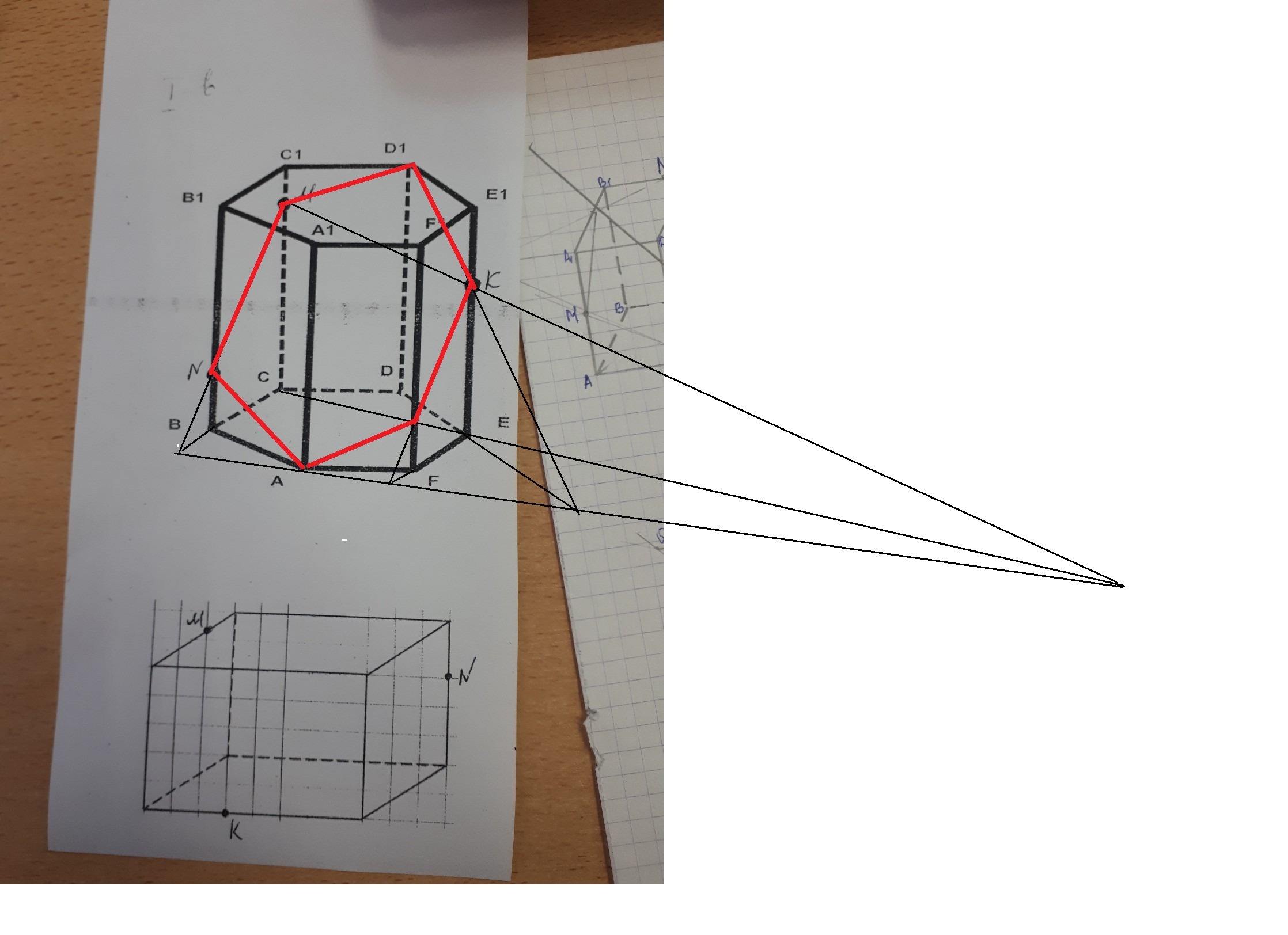 Затем использовать стороны основания для построения следов сечений боковых граней.