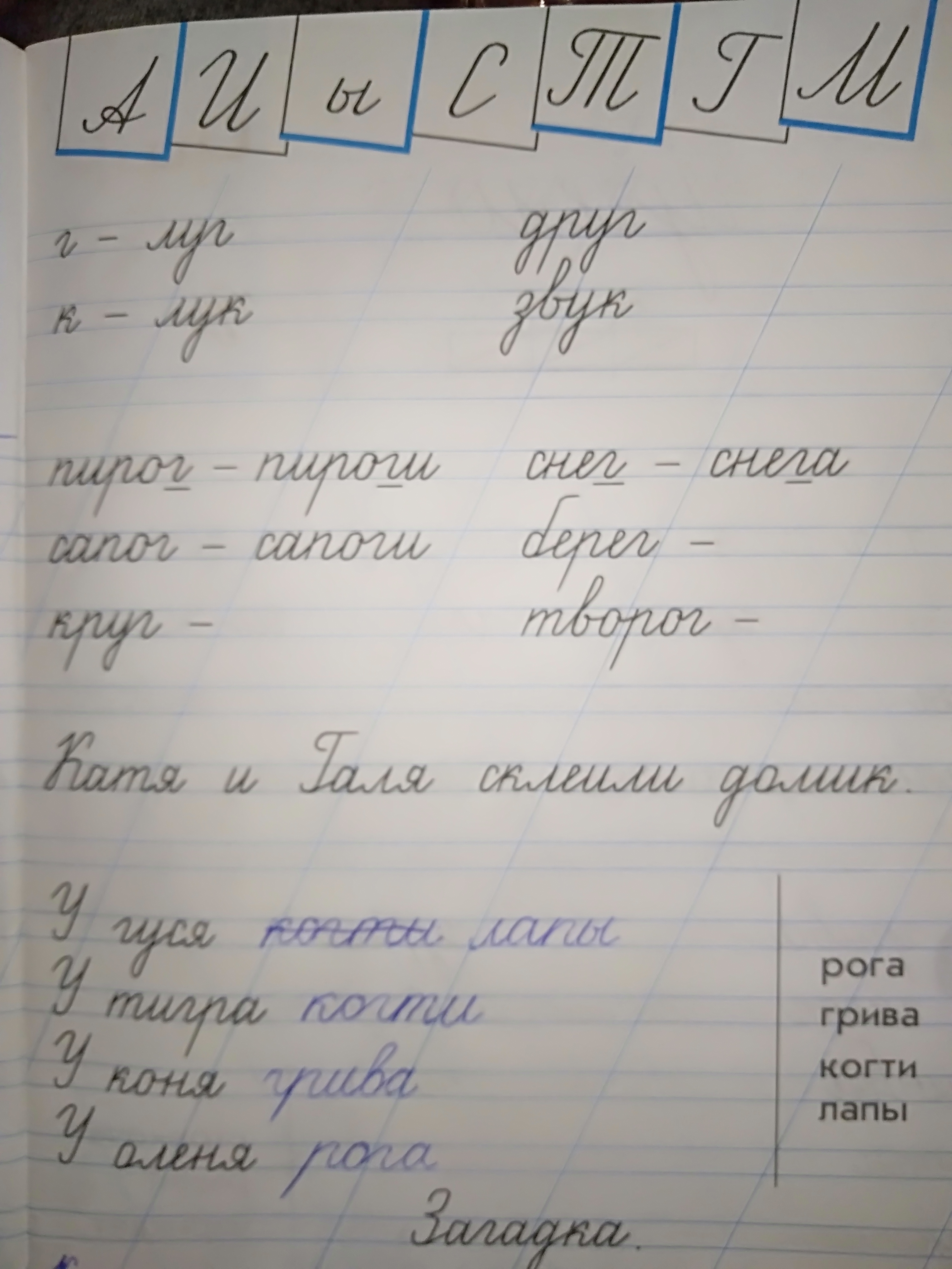 Пирог-пироги, сапог-сапоги, круг-круги, снег-снега, берег-берега, творог-творога