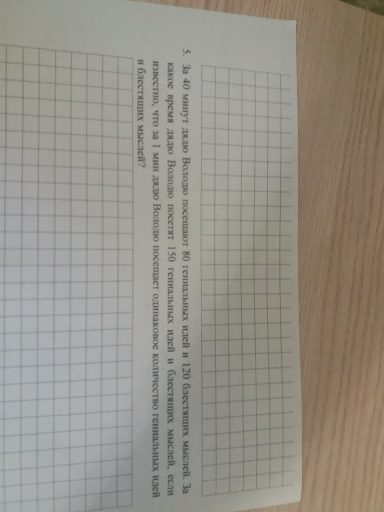 150/5=30 мин — столько понадобится времени, чтобы дядю Володю посетило 150 гениальных идей и блестящих мыслей.