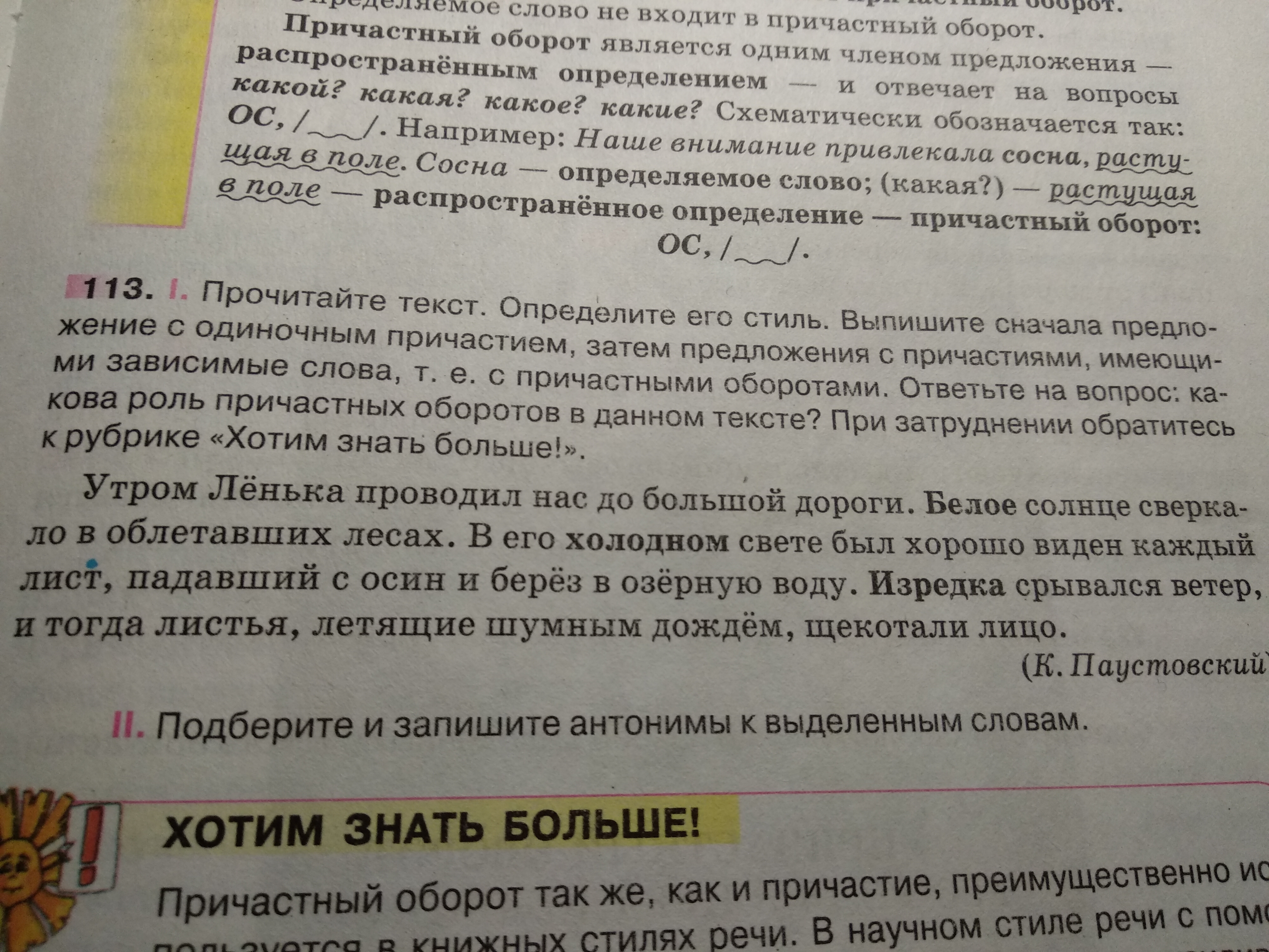 Думаю, какова роль причастных оборотов, ты понимаешь. Они более подробно описывают явления и предметы, делают текст красочным, интересным