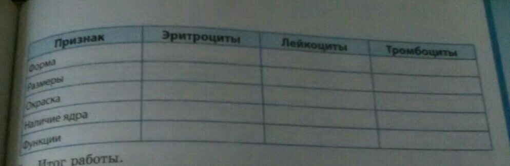 Наличие ядра: эритроциты- нету