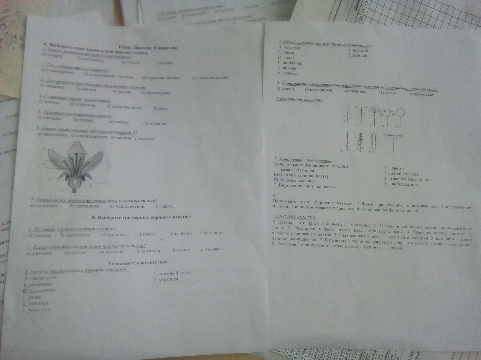 6.Какая часть цветка обозначает цифра "3"? (на фотографии слева)