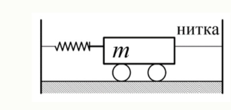 Тележка массы м с одной стороны соединена со стенкой пружина жесткость к , деформация которой равен ? X , а с другой - невесомая нитью.