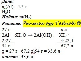 Определить объем водорода, в реакции с водой AL массой 37 гр.