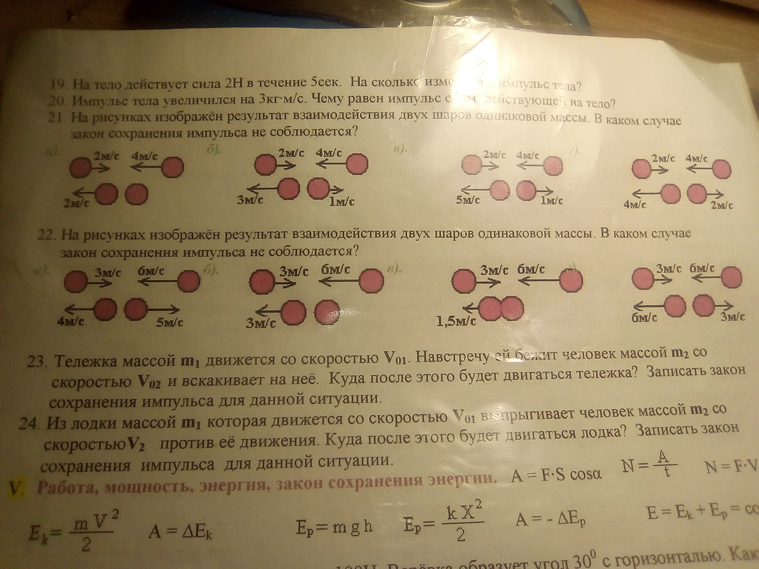 21.импульс тела р=m*V. т.к. шарики одинаковой массы, тогда пусть m=2кг: р1=2кг*4м/с=8кг*м/с -для первого шарика,