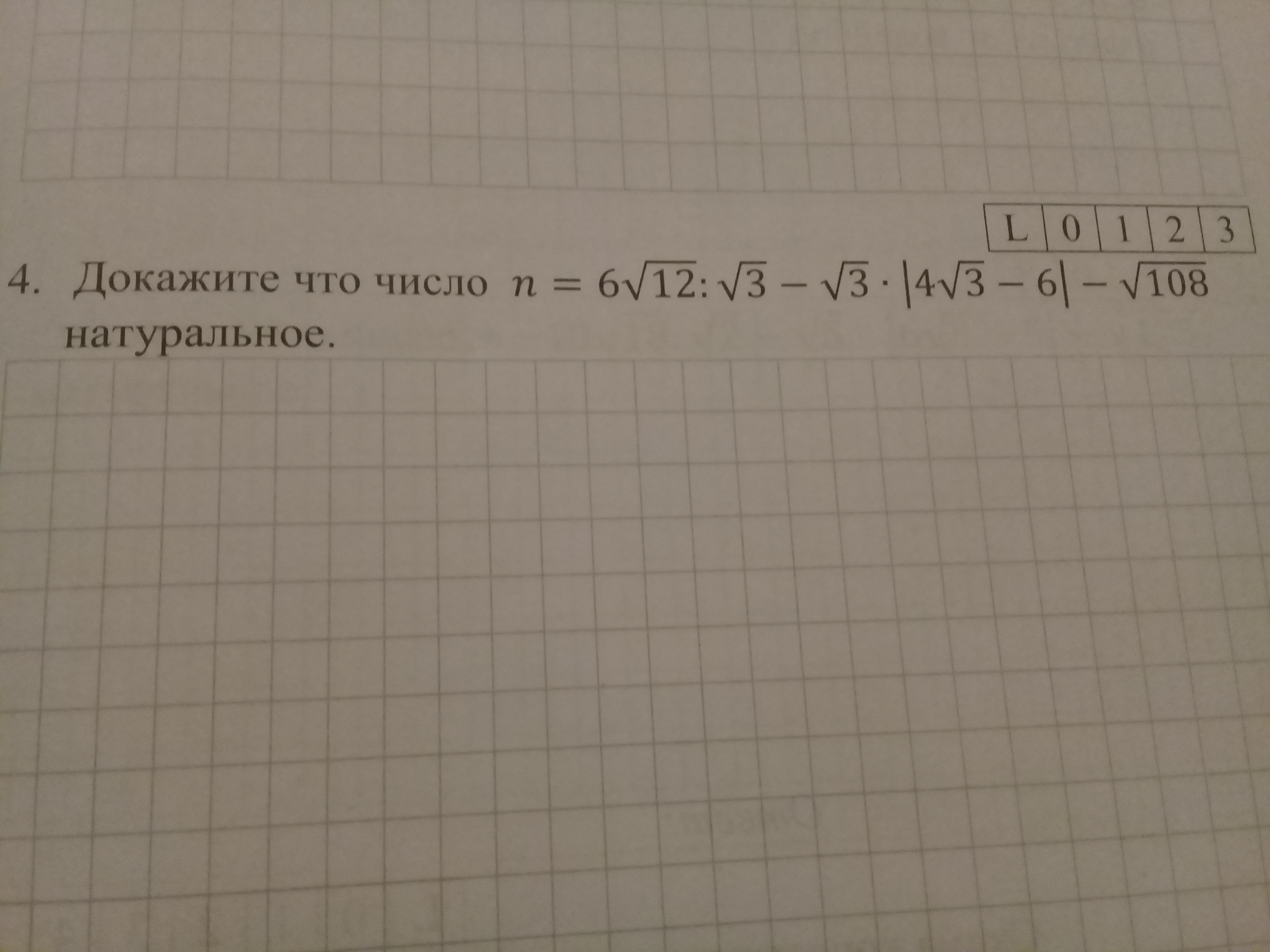 А) Докажите что n=6корень из 12÷корень из 3 - корень из 3 × |4корень из 3-6| - корень из 108 натуральное.