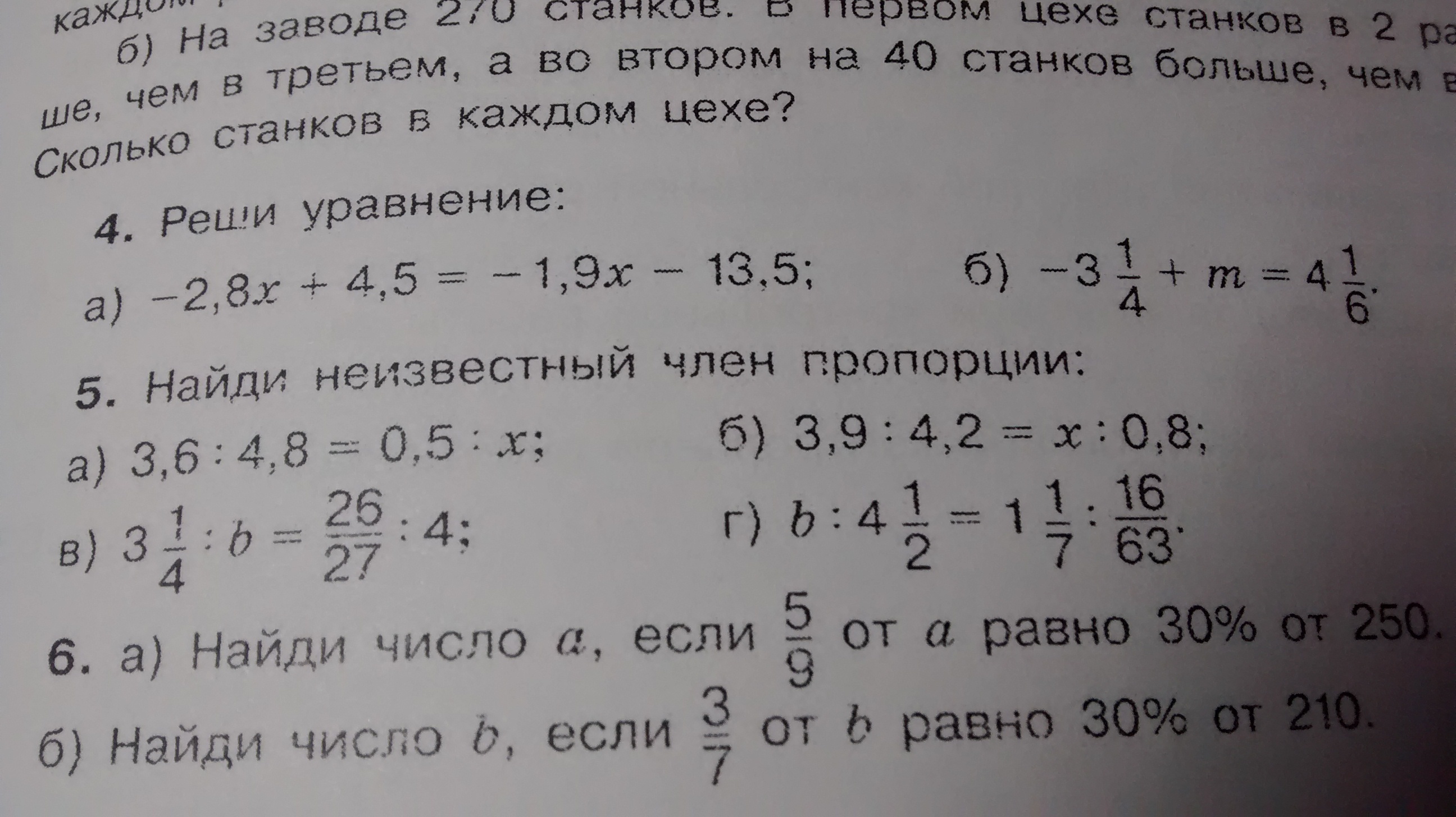 б)3,9 : 4,2 = х : 0,8 откуда 4,2х = 0,8*3,9 и х = 26/35