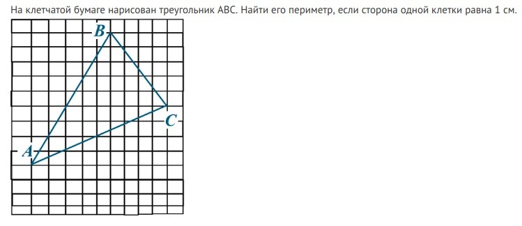 Если 1 клетка=1см значит что АС=9 см, ВС=5, AB=9. Значит 9см+5см+9см=23см.