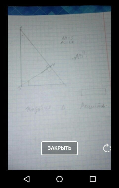 Теперь смотрим на треугольник АНВ(угол Н 90°)