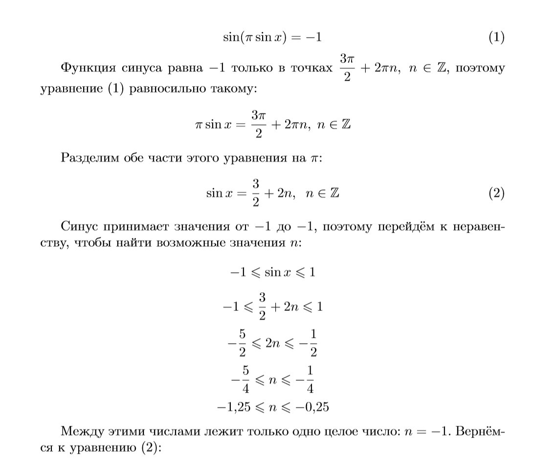 sin( п•sinx ) = - 1