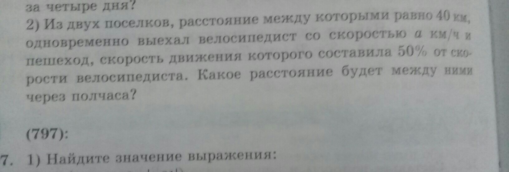 1,5а*0,5=0,75а км - прошел пешеход и проехал велосипедист за 0,5 ч