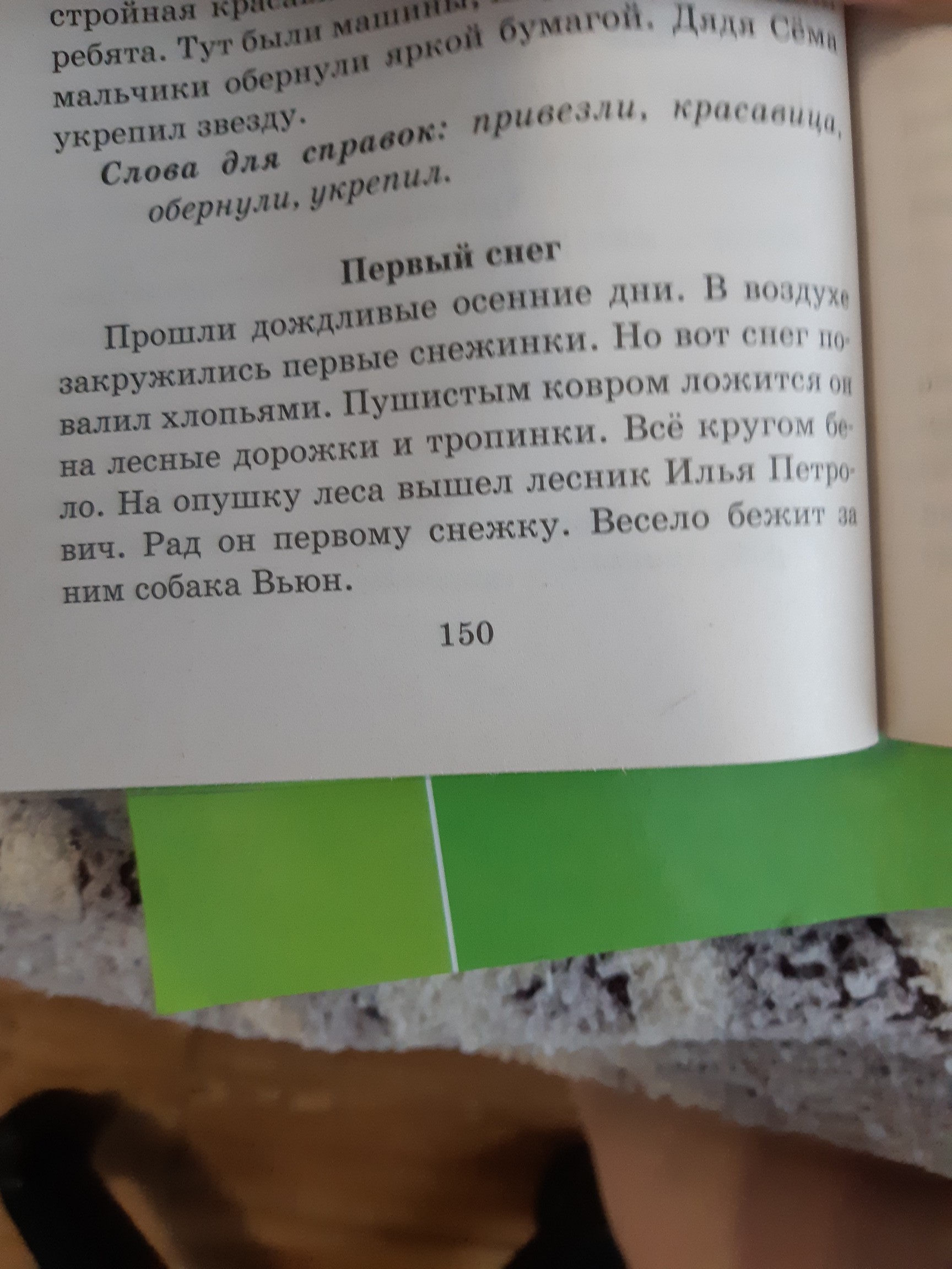 (какие?)дождливые осенние дни;(какие?)первые снежинки;повалил (чем?) хлопьями;ковром (каким?) пушистым;(какие?)лесные дорожки и тропинки;рад(чему)снежку;снежку(какому?)первому;бежит(как?) весело;бежит(кто?)собака.