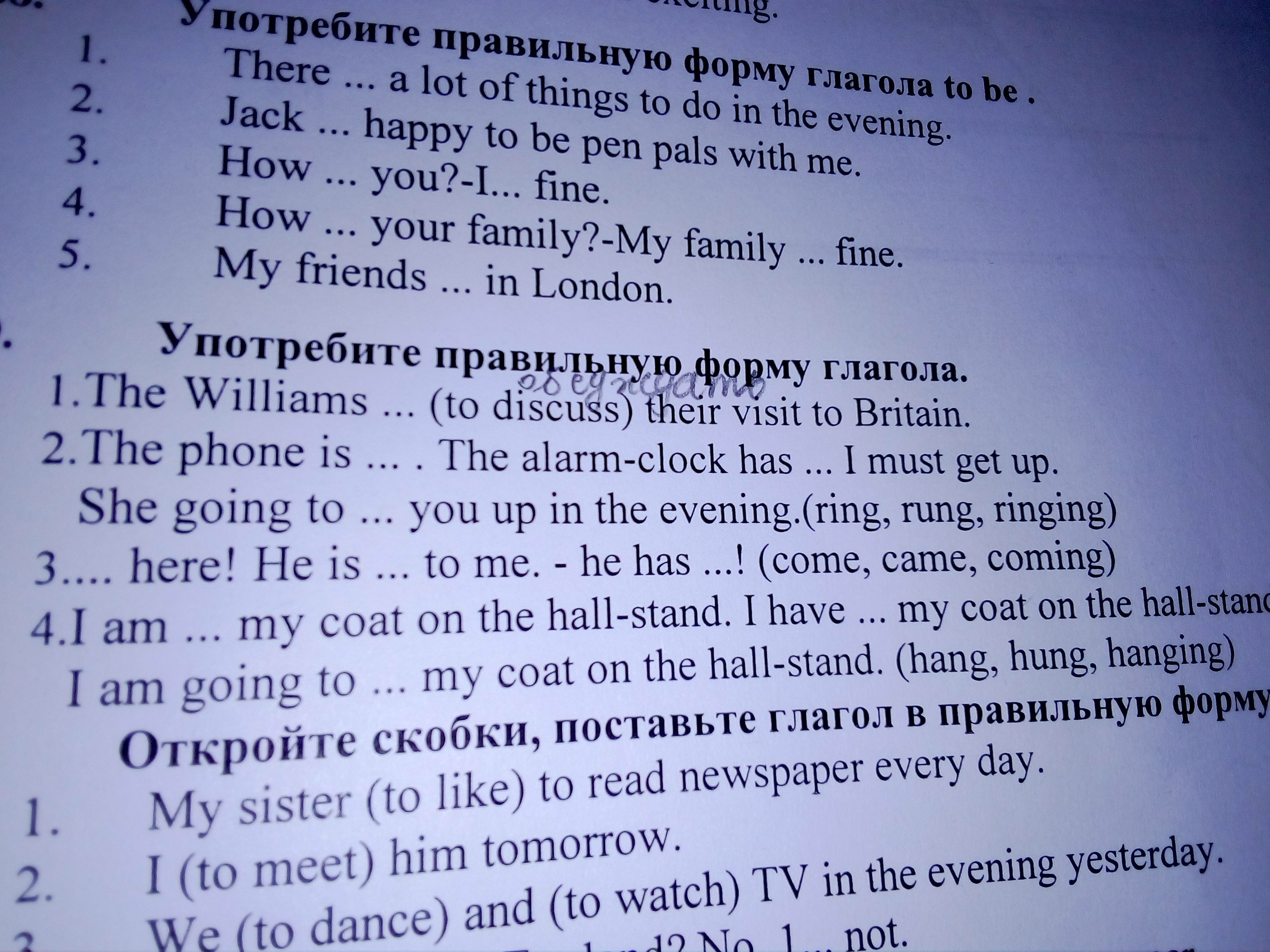 1 are discussing 2 ringing, rung, ring 3 Come, coming, come 4 hanging, hung, hang