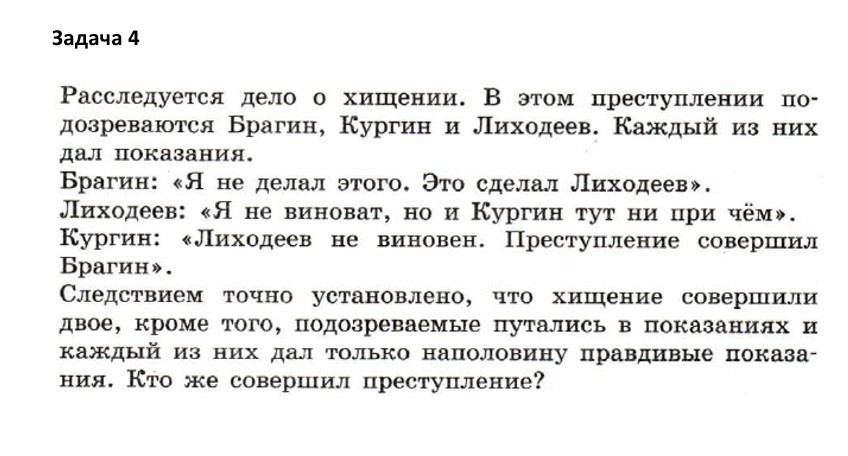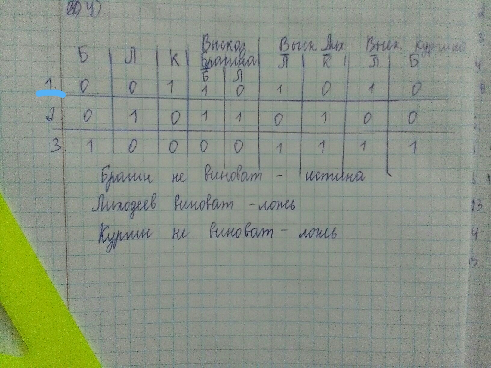 подходит 1, получается Лиходеев не виноват, преступление совершили Кургин и Брагин