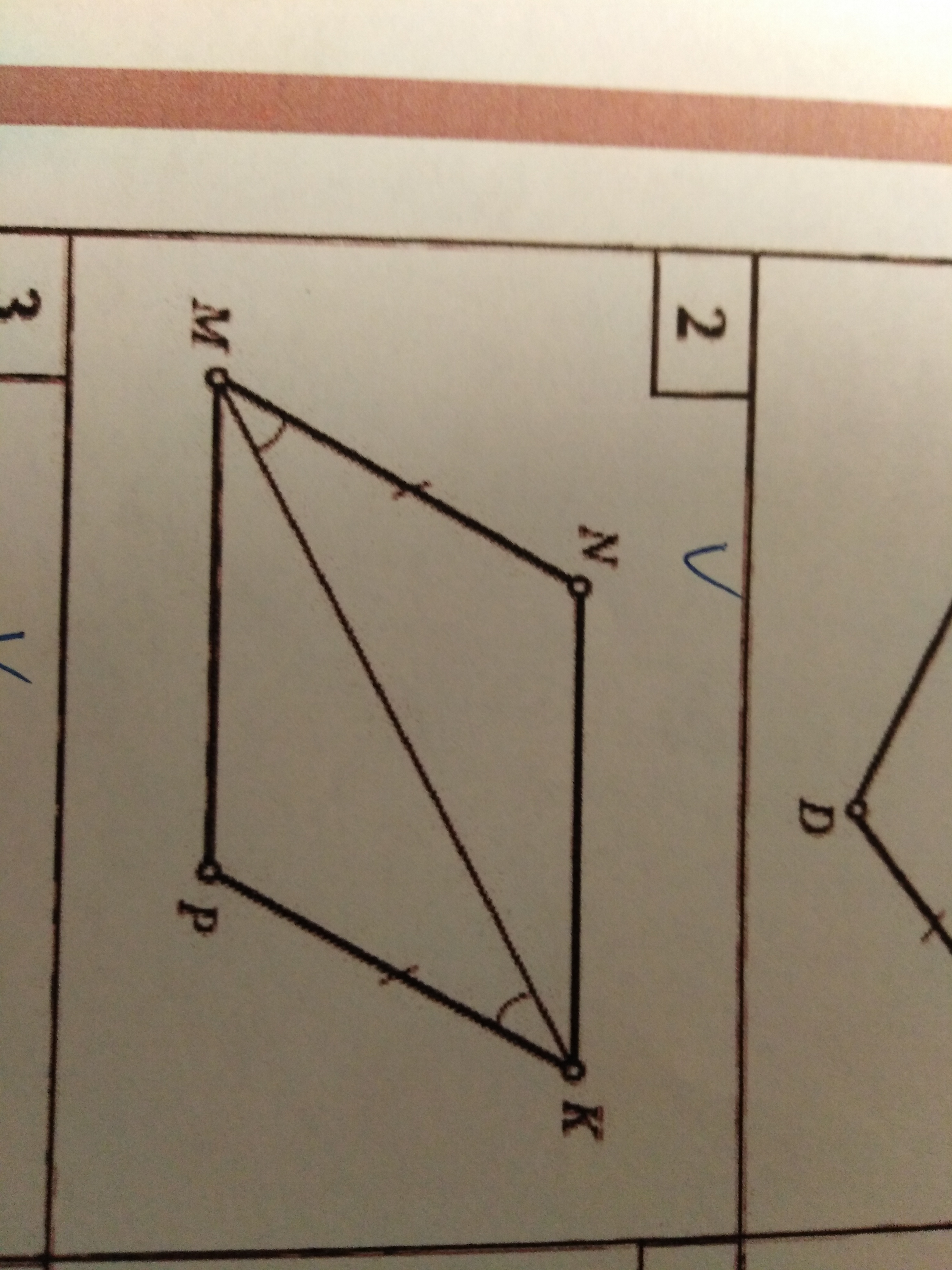 треугольники мнк и мрк равны по 1 признаку т.к. мн=кр и угол кнм= углу мрк и по общей стороне мк