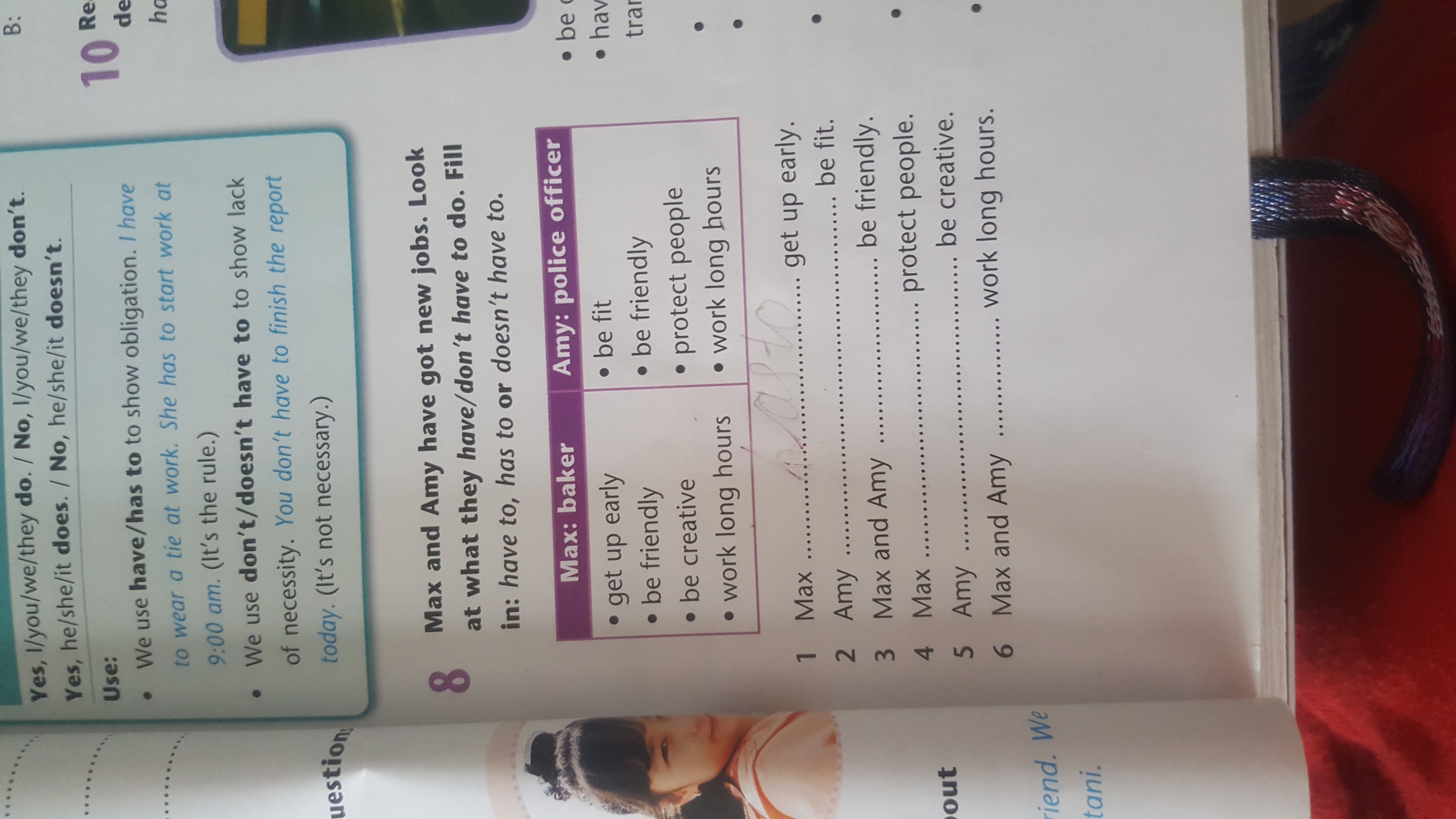 1. Has to 2. Has to 3. Have to 4. Don*t has to 5. Don*t has to 6. Have to
