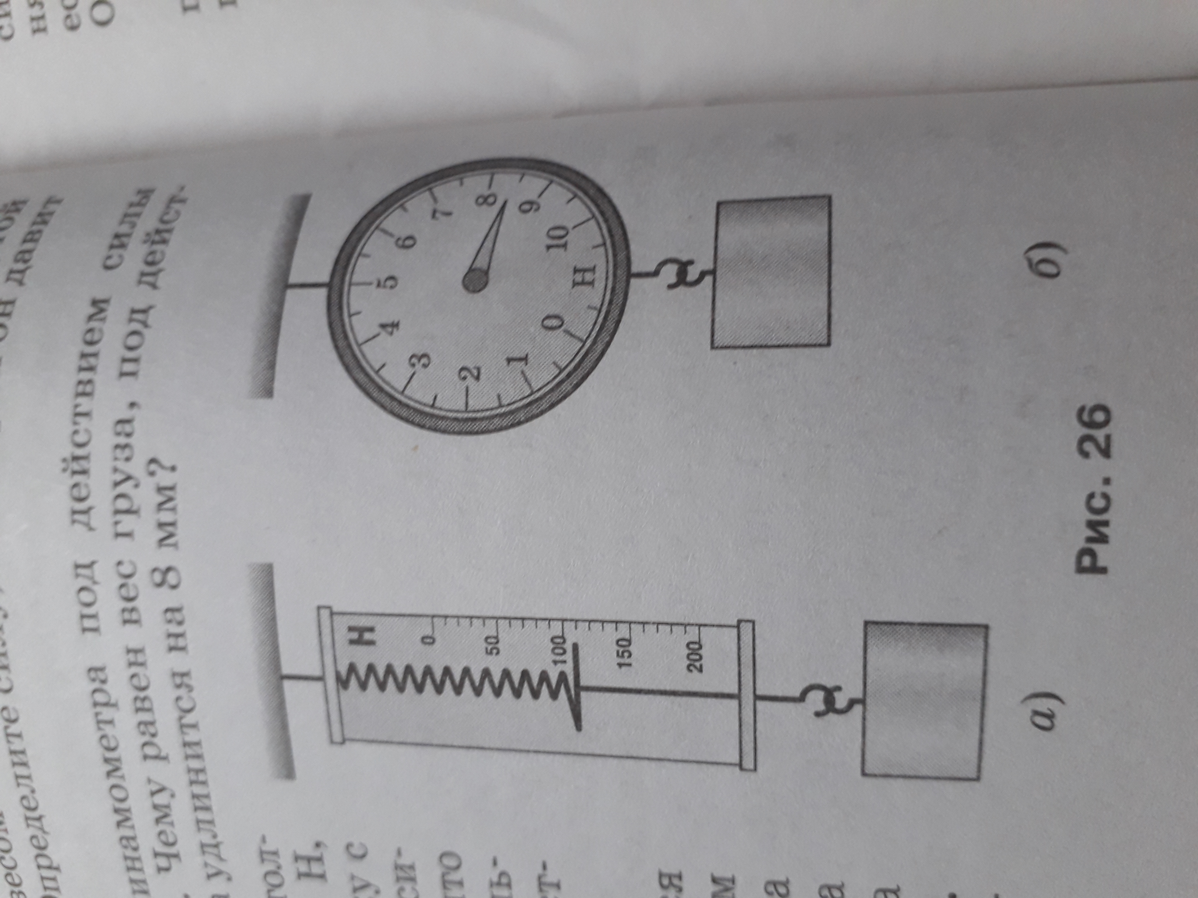 Опредилите цену деления шкалы каждого прибора (рис. 26) и силу тяжести,действующую на каждый груз.