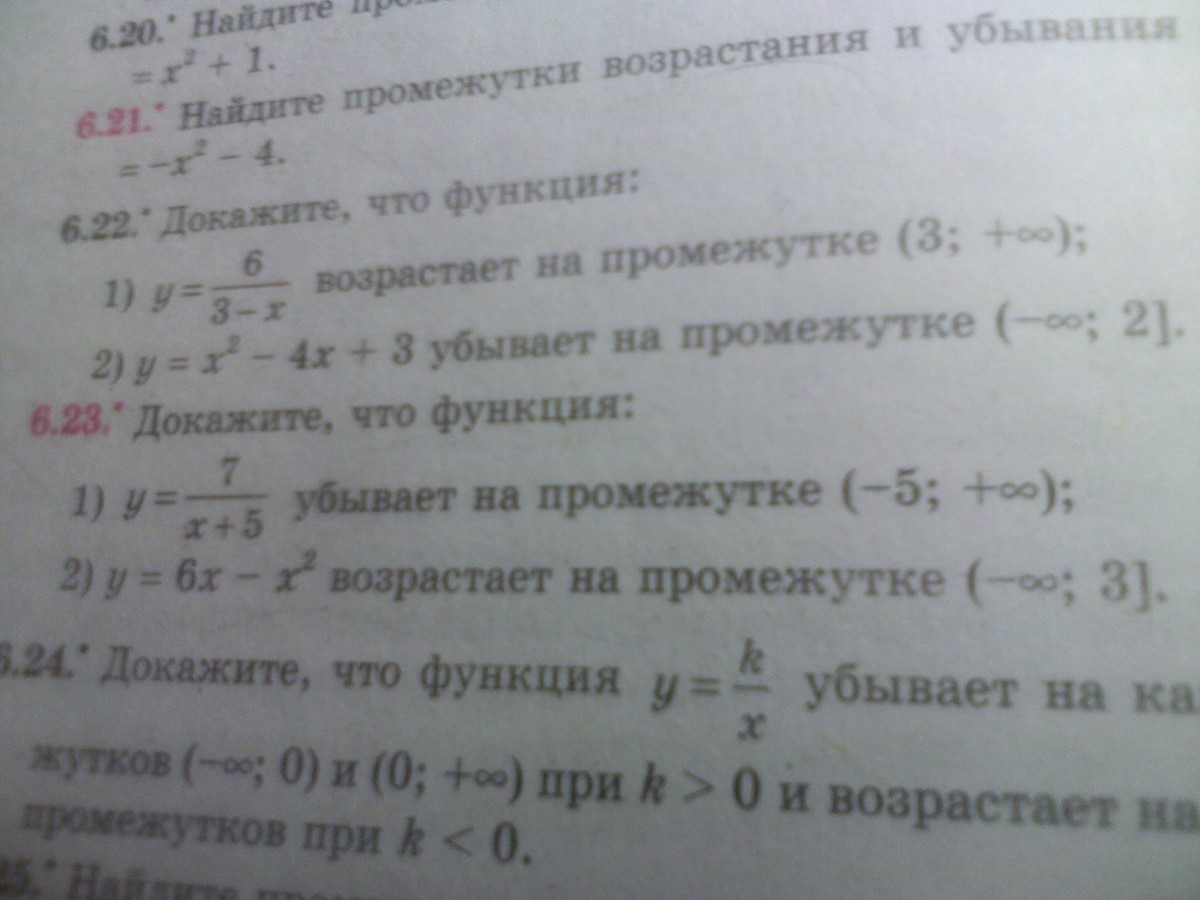 доказать,что функция у=6 дробь 3-х возрастает на промежутке (3;+бесконечность) у= х^2-4х+3 убывает на промежутке ( -бесконечности; 2]