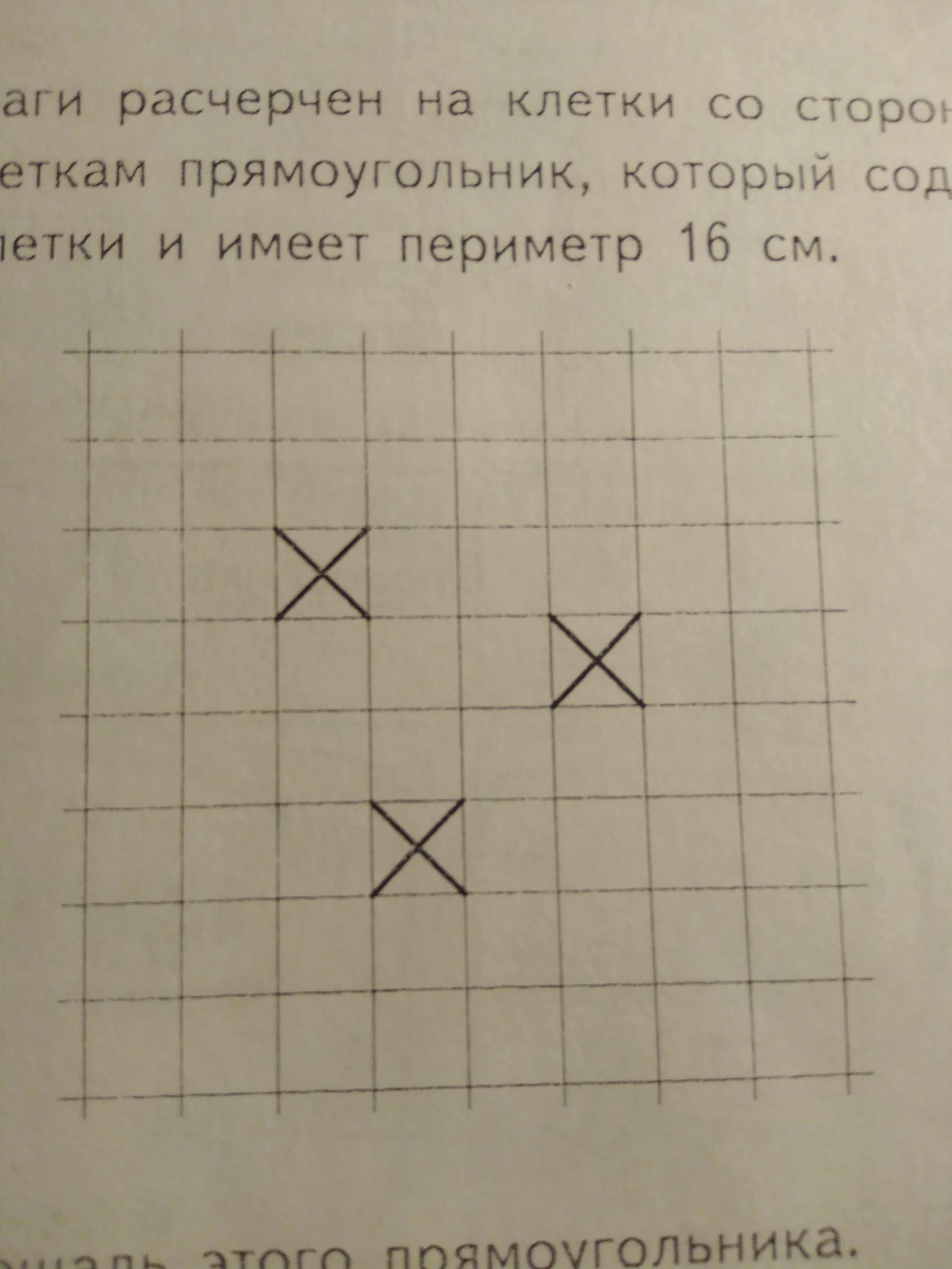 лист бумаги расчерчен на клетки со стороной 1 см нарисуй по клеткам прямоугольник который содержит все отмеченные клетки и имеет периметр 16 см
