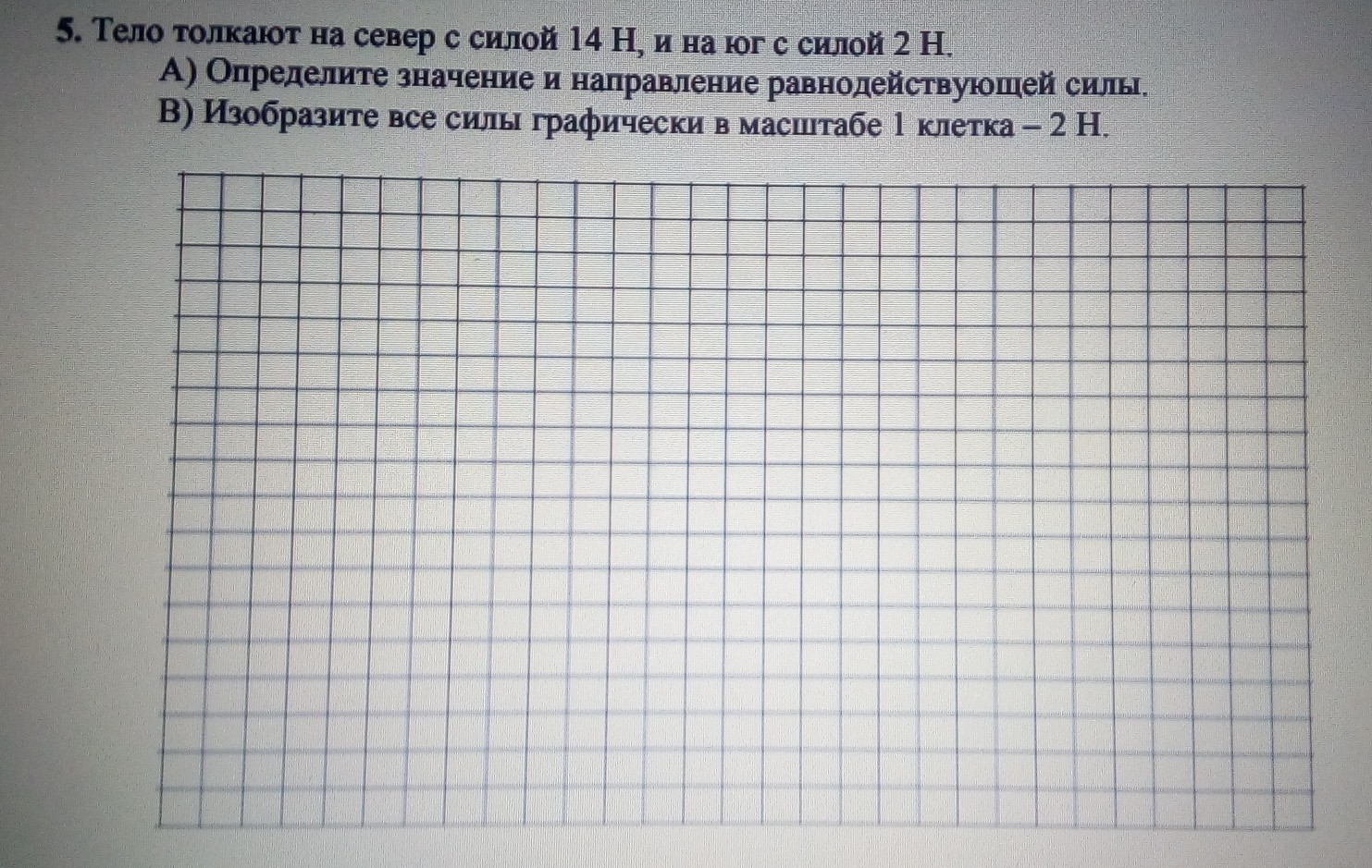 тело толкают на север сила 14 Н и на юг сила 2 Н Определите значение и направление равнодействующей силы изобразите все силы графически в масштабе 1 клетка 2 Н