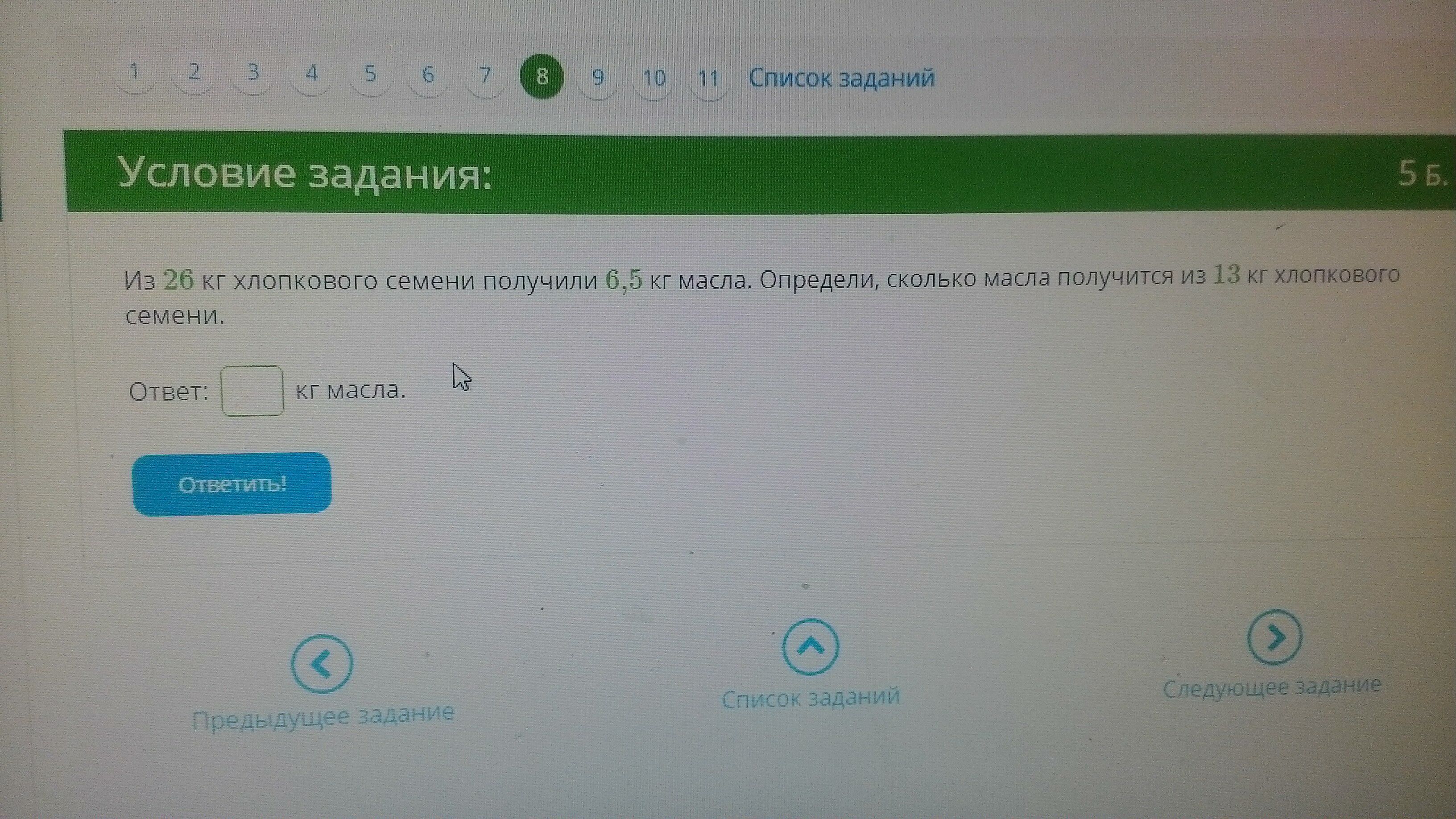 Нужно 6.5/2 тк 26/2=13 получаем 3.25