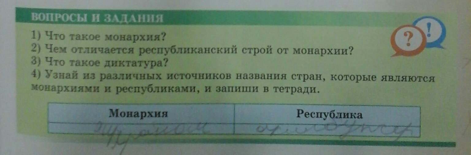 2)Монархическая форма правления принадлежит одному и передаётся по наследству.Республиканская форма правления может выбрать любого в президенты.Сейчас у большинства стран республиканская форма правления.