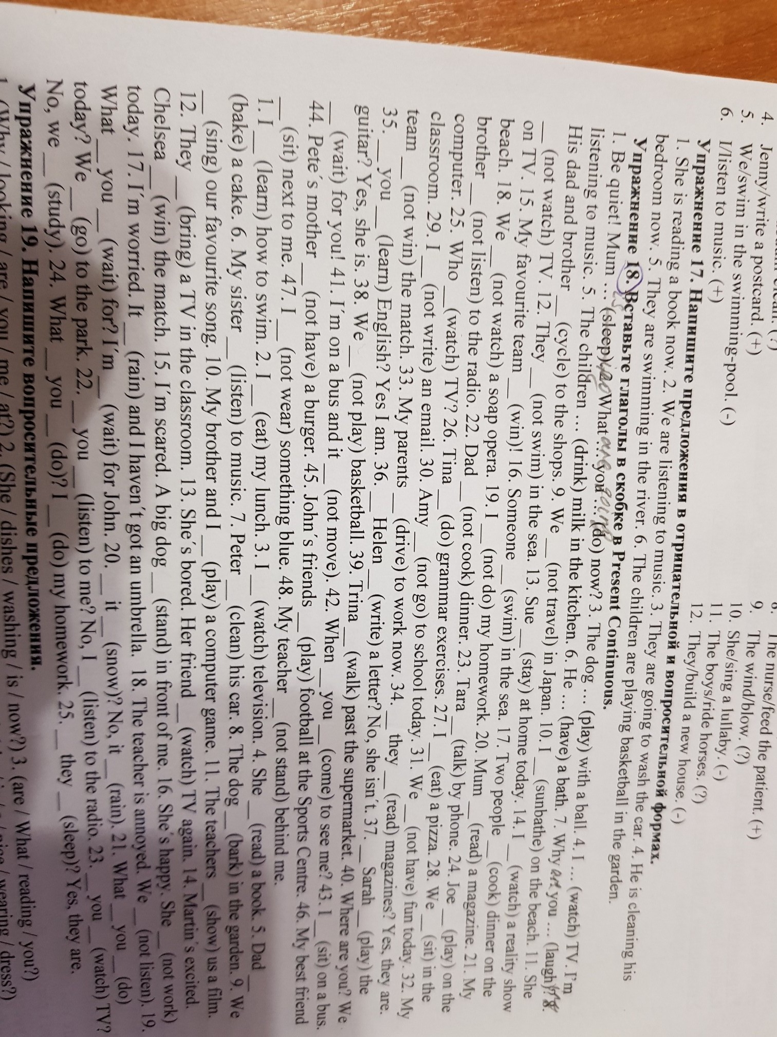Если l то добавляем am , если he,she,it тогда добавляем is, а если they,we,you, тогда are,а к глаголу всегда добовляем окончание ing.