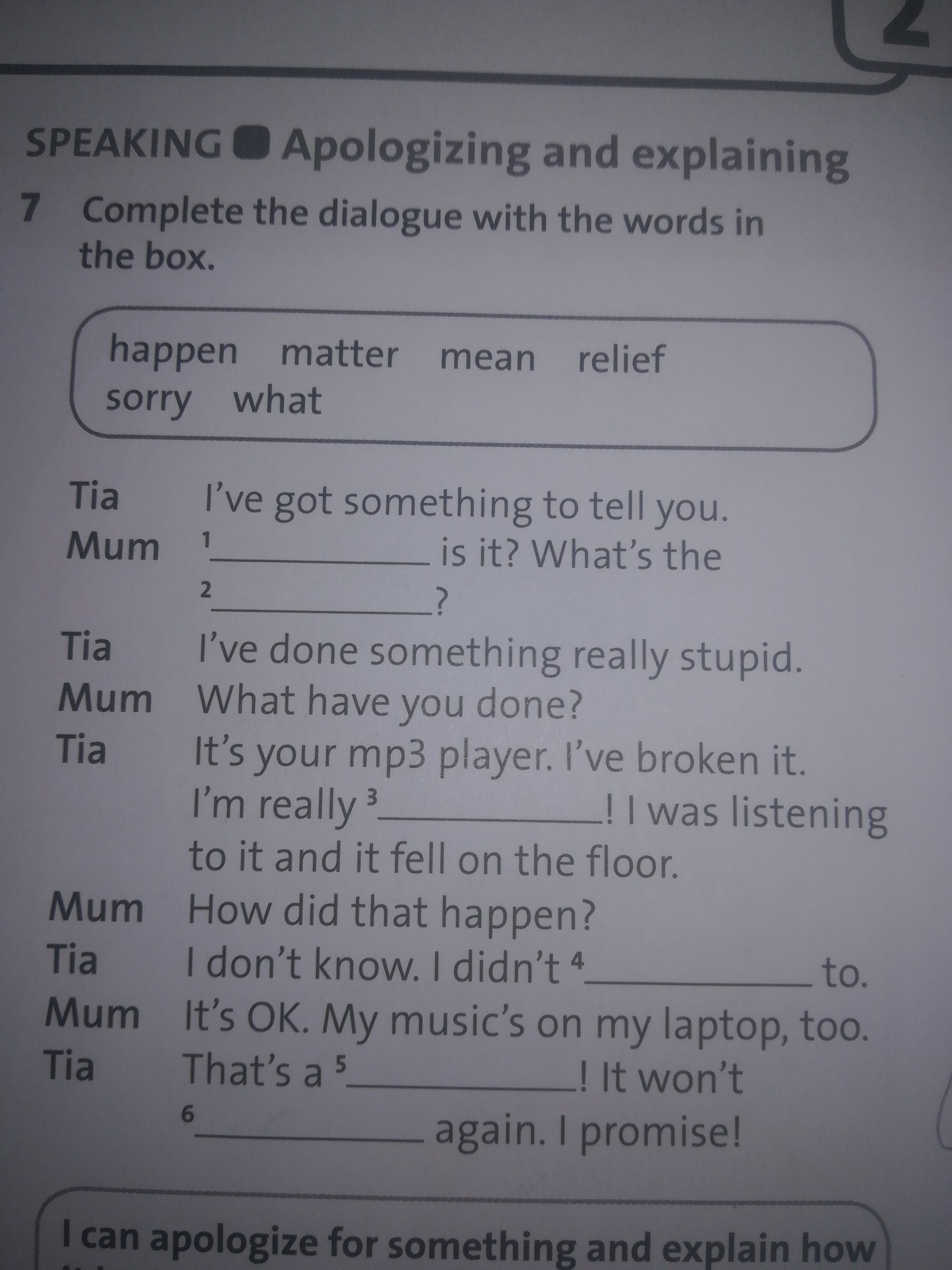 what 2 mean3sorry4relief5happen6matter