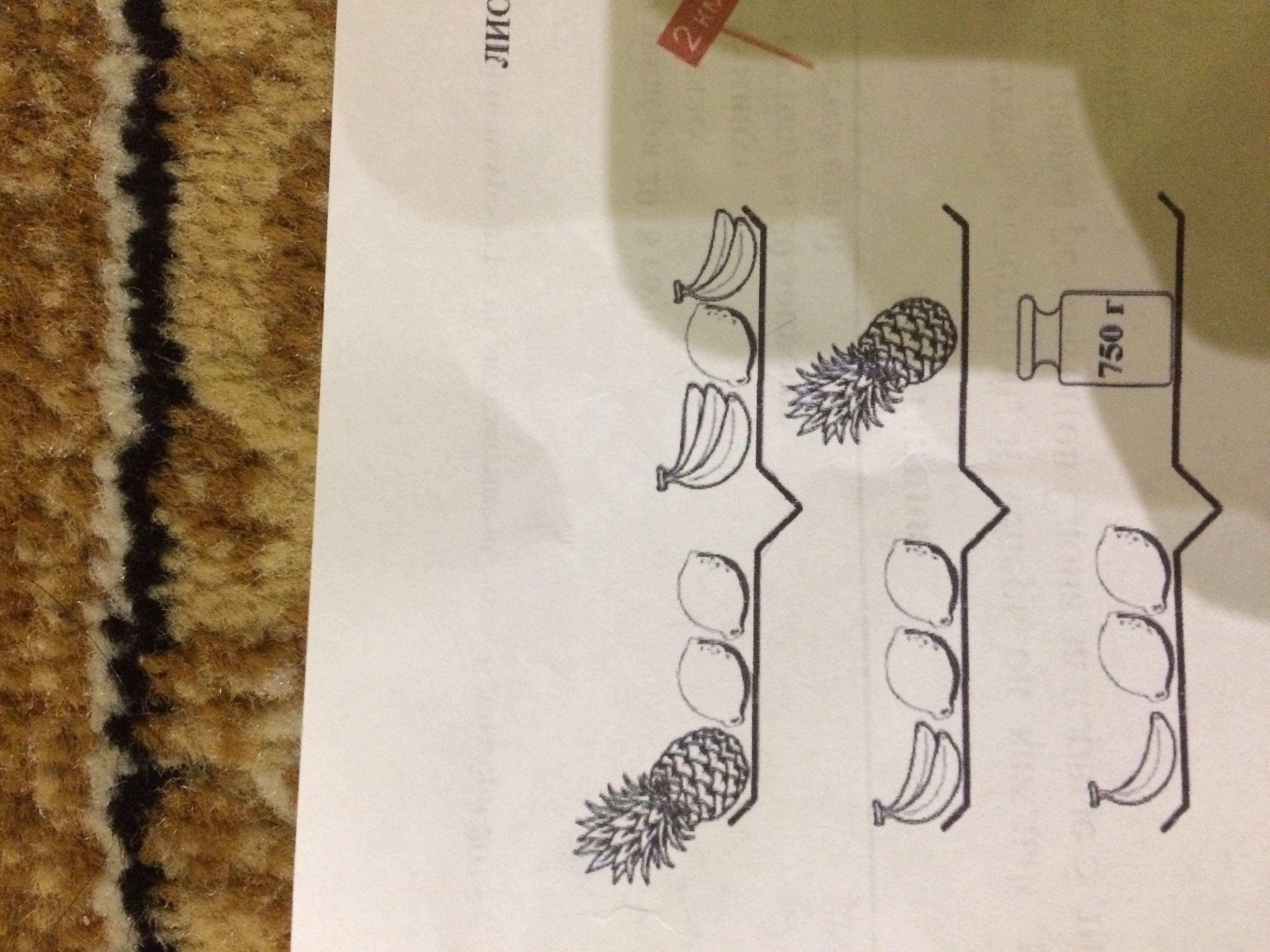 Мартышка иногда помогает свои тёти во фруктовый лавке. Посмотри весы, они находится в равновесии. Сколько граммов весит ананас и два лимона вместе? Ответ запишите числом.