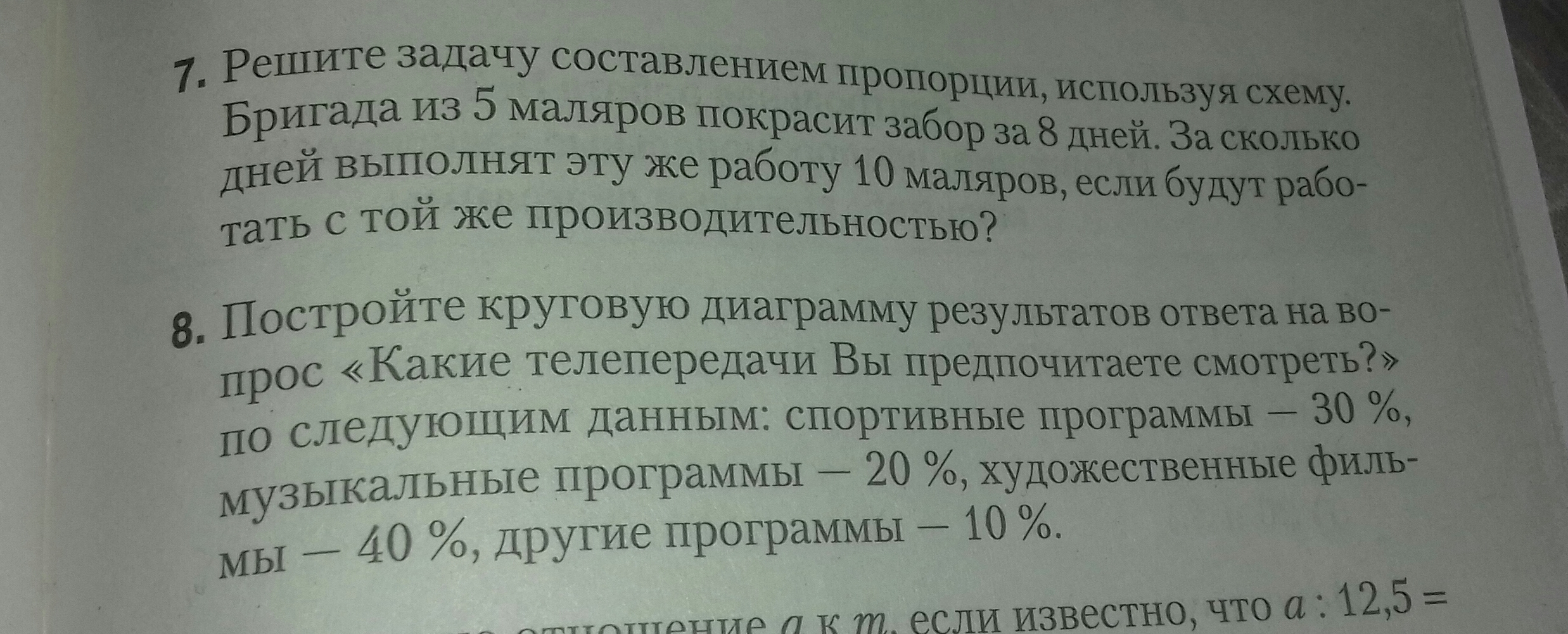 Пошаговое объяснение: в 8 задании просто надо нарисовать диаграмму с помощью циркуля, и транспортира, всесли ответы там есть.