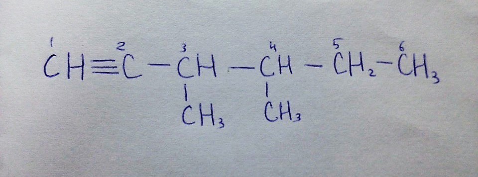 Структурная формула: 3,4-диметилгексин-1