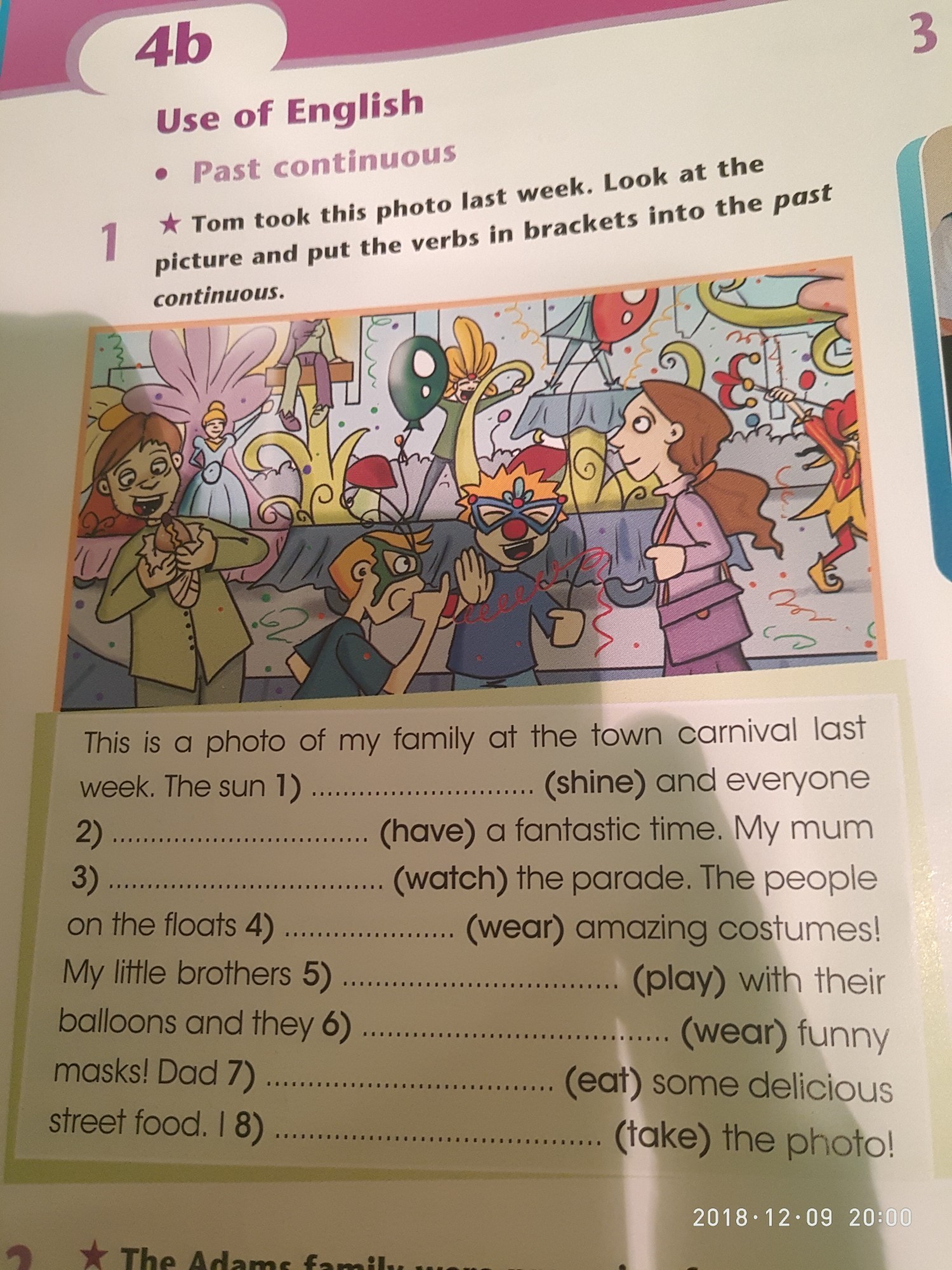 The sun was shining .... It was having a fantastic ... My mum was watching... The people... were wearing ... My lil brother.. was playing... They were wearing... Dad was eating... I was taking ....