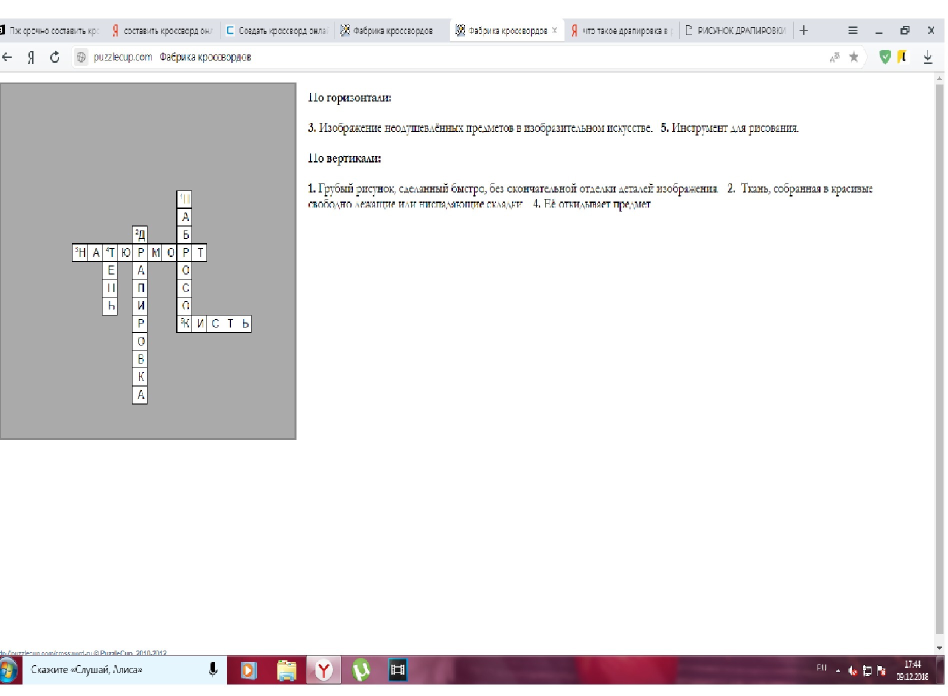 Пж срочно составить кроссворд , ключевое слово «натюрморт» (с вопросами и ответами)