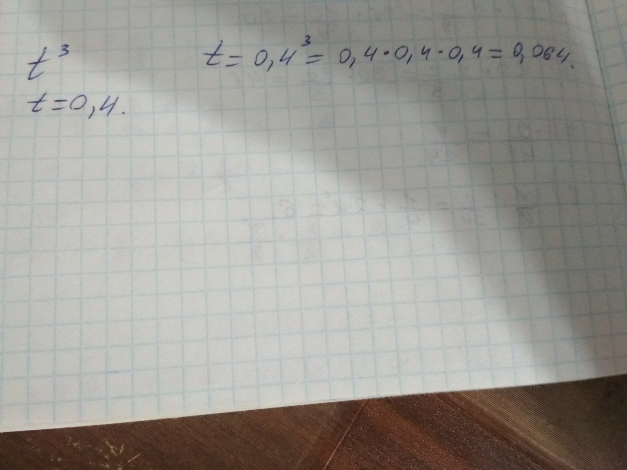 t³ = 0,4³ = 0,4 × 0,4 × 0,4 = 0,064.