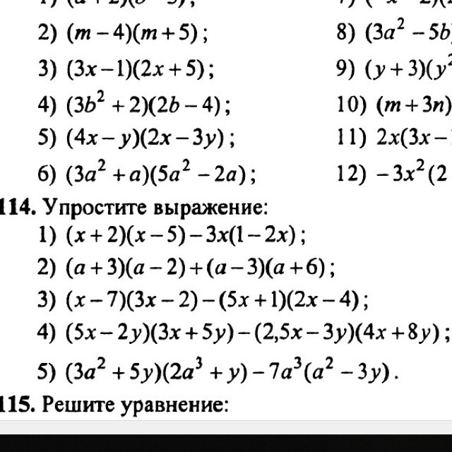 1) ( х+2) * ( х-5) - 3х* ( 1-2х) = х^2 - 5х + 2х - 10 - 3х + 6х^2 = 5x^2 - 6x - 10