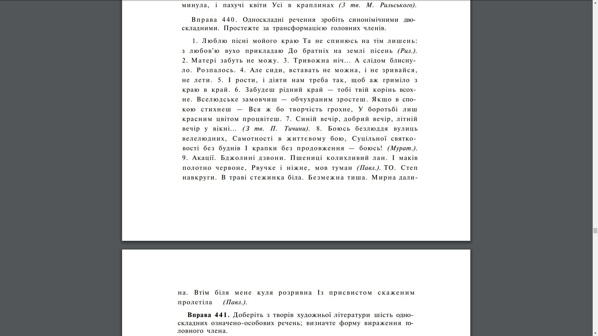 Вправа 440 . Односкладні речення зробіть синонімічними двоскладними.