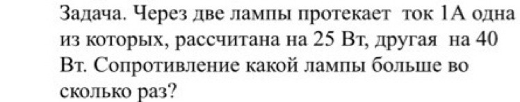 Ответ: сопротивление второй лампы в 1,6 раз больше сопротивления первой лампы.