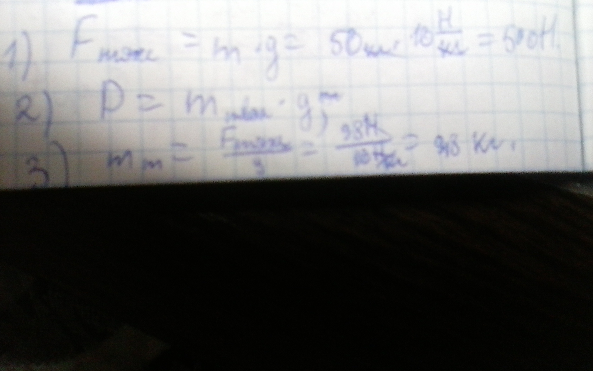 Найдите силу тяжести, действующую на тело массой 50 кг; 2) найдите свой вес; 3) определите массу телу, если на него действует сила 98 Н