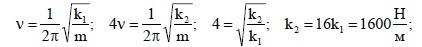 Допоможіть будь ласка... Вантаж підвішений на легкій пружині жорстікстю 100 Н/м, здійснює вільні гармонічні коливання. Якою має бути жорсткість пружини, щоб частота коливань цього ж вантажу збільшилася в 4 раза?