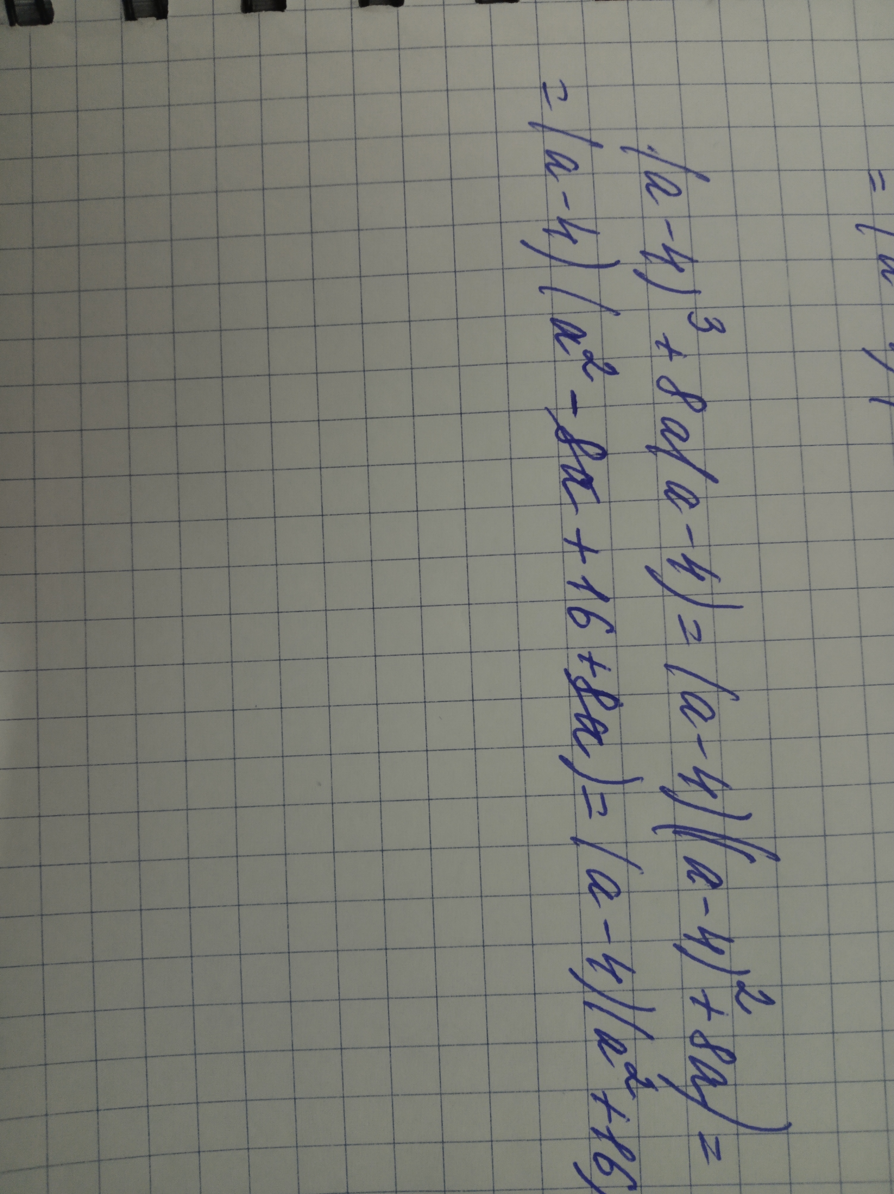 (a - 4) ³ + 8a(a - 4) = (a - 4)[(a - 4)² + 8a] =(a - 4)(a² - 8a + 16 + 8a) =