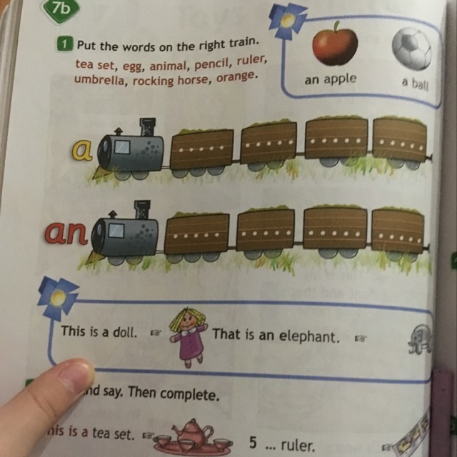 a - tea set, pencil, ruler, rocking horse,