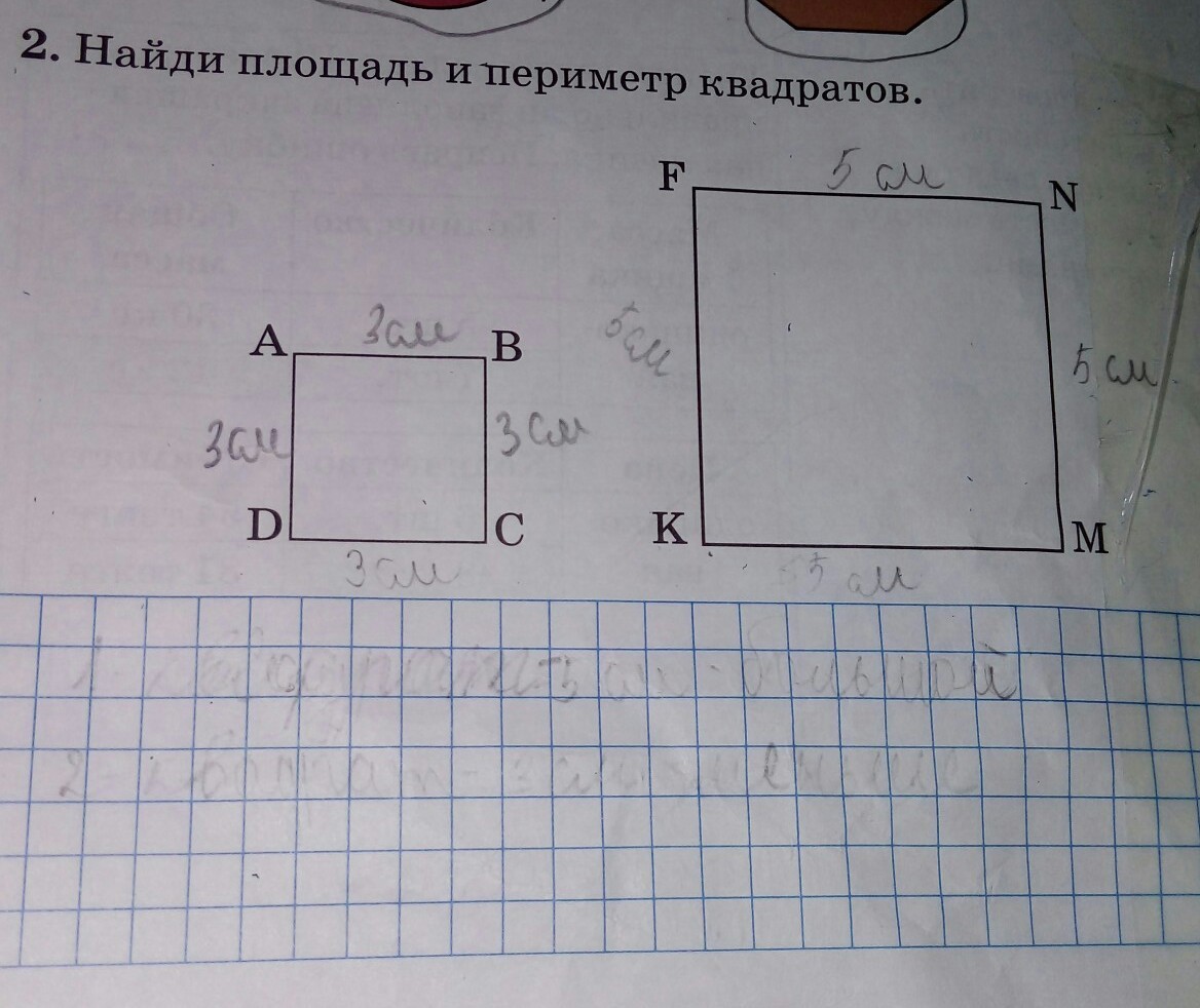 S = A*B = 3*3 = 9 см² - площадь квадрата