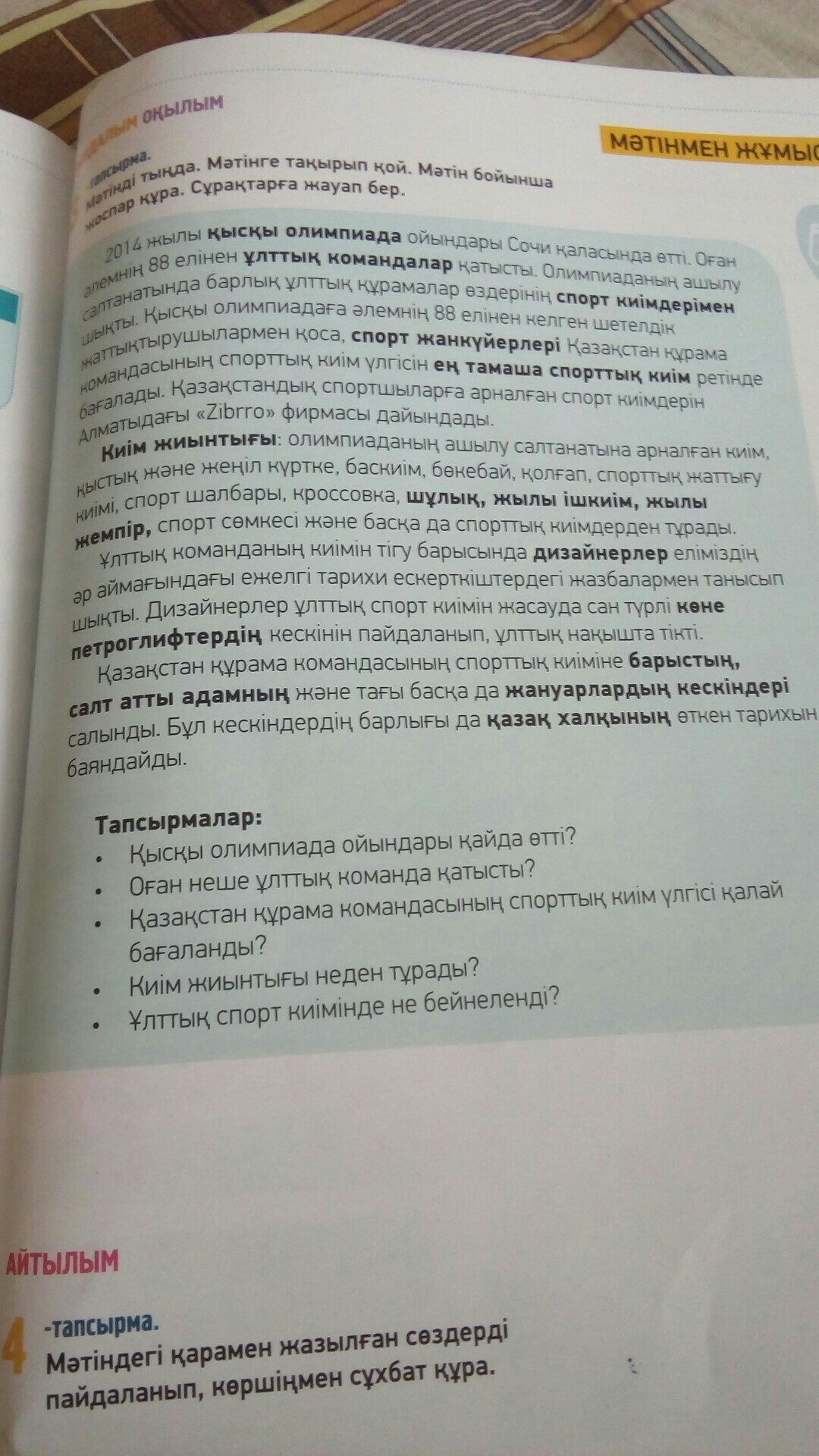 Мәтінді тыңда. Мәтінге тақырып қой. Мәтін бойынша жоспар құра. Сұрақтарға жауап бер.