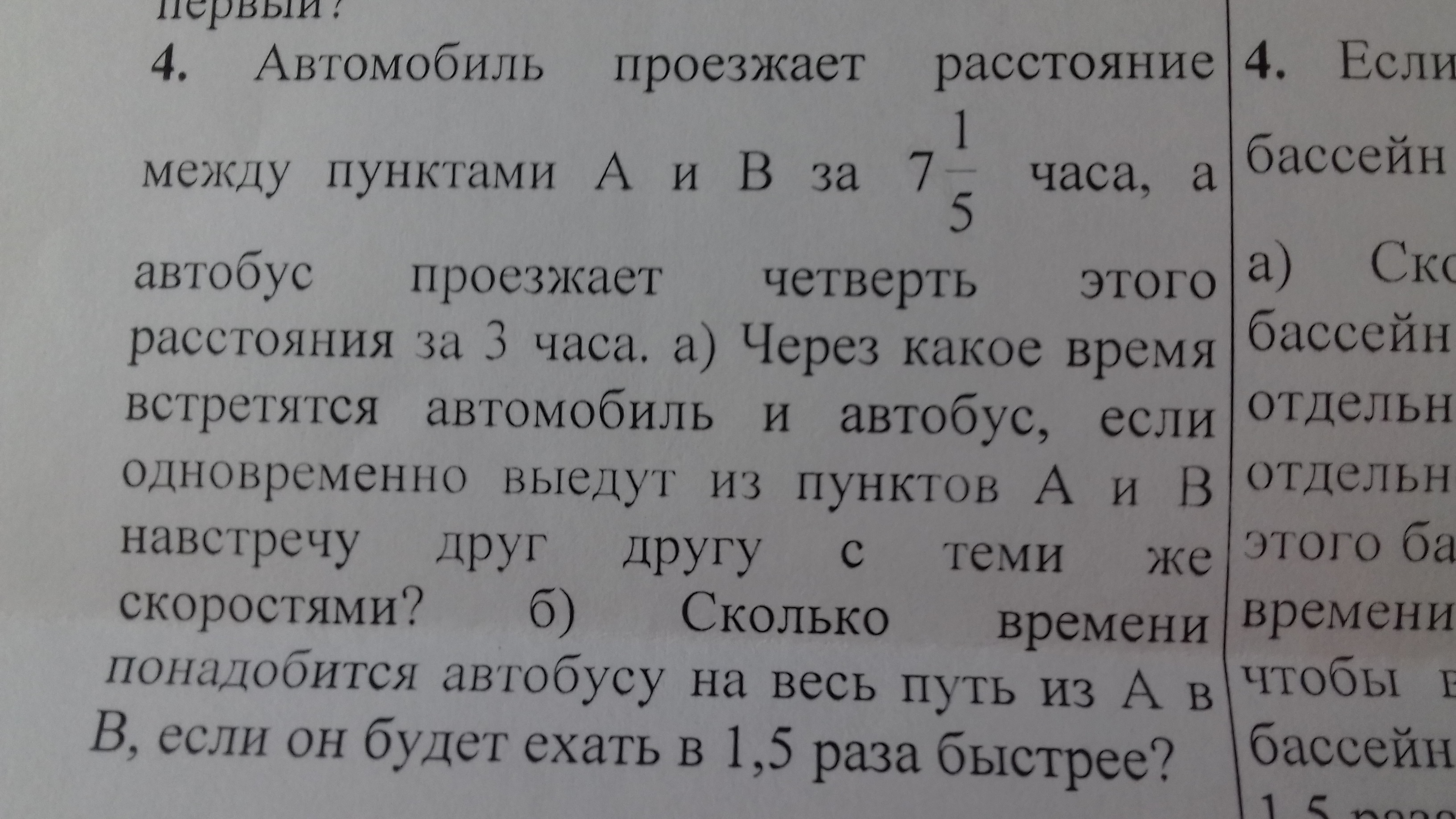 7.2x/(x+3x)=1.8 часа до встречи авто и автобуса