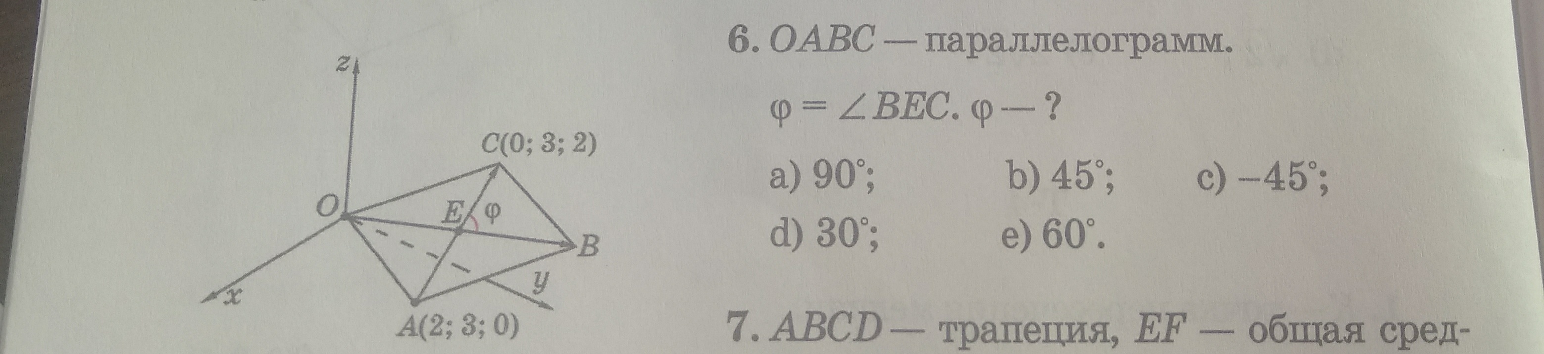 Cosφ =(ОВx*ACx +OBy*ACy+OBz*ACz)/(|OB|*|AC|) = (-4 +0+4)/(4√11) = 0. => φ = 90°.