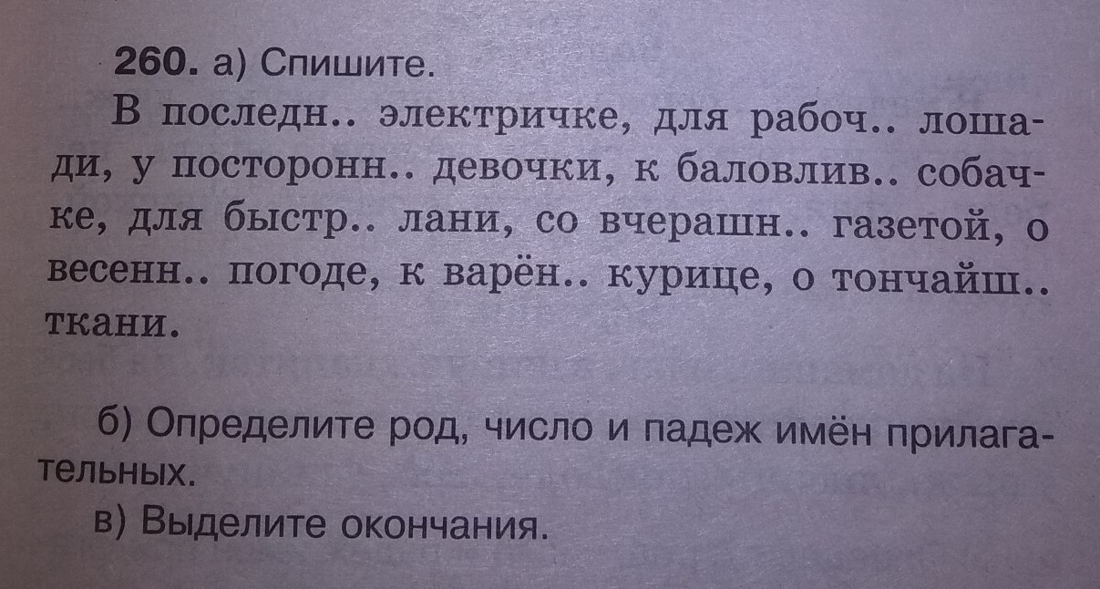 В последней(ж.р.,ед.ч.,П.п.) электричке,для рабочей(ж.р.,ед.ч.,Р.п.) лошади, у посторонней(ж.р.,ед.ч.,Р.п.) девочки,